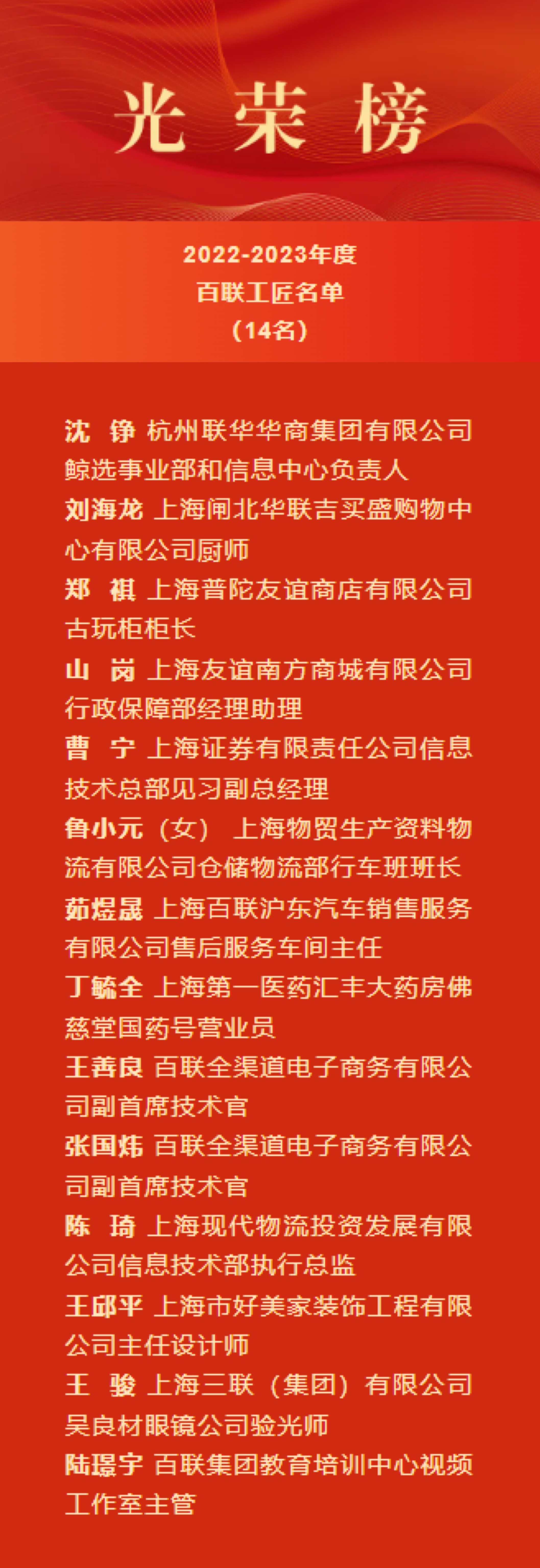 2022-2023年度百联集团先进集体和优秀员工名单闪耀出炉