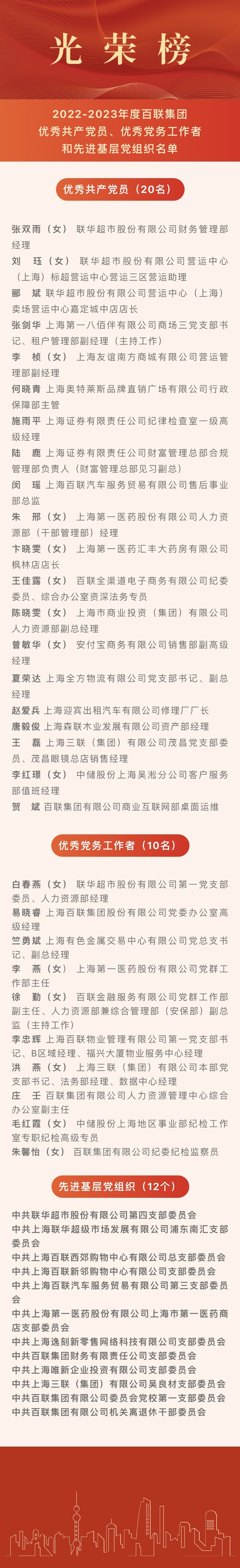 致敬榜样力量!2022-2023年度百联集团“两优一先”表彰名单公布