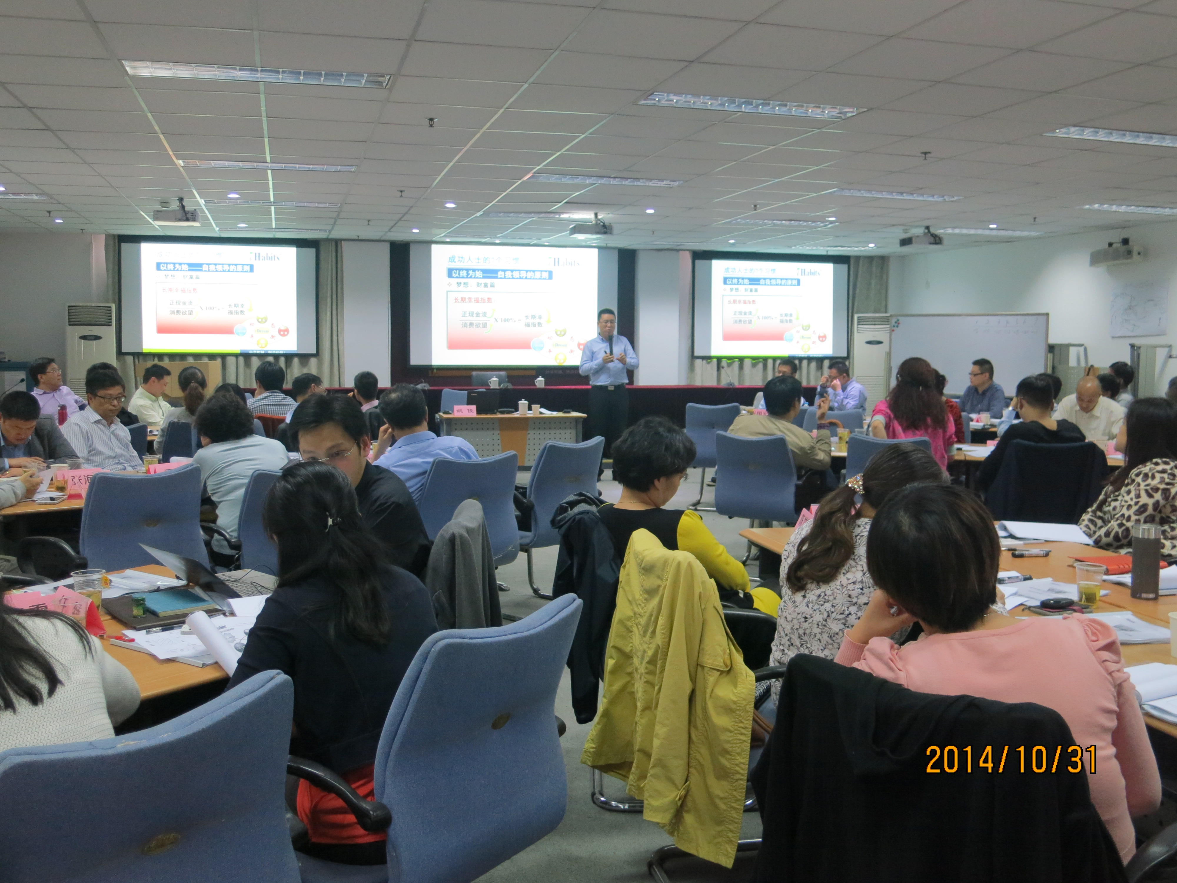 日前,集团商务电子化项目组委托集团教培中心举办了《成功人士的七个习惯》专题培训。集团首席信息官金麒,商务电子化项目群执行经理、各业务组核心人员约80人参加了为期两天的培训。培训通过案例分析、分组讨论、互动分享等形式,学习了积极主动、以终为始、要事第一等“七个习惯”的课程内容。