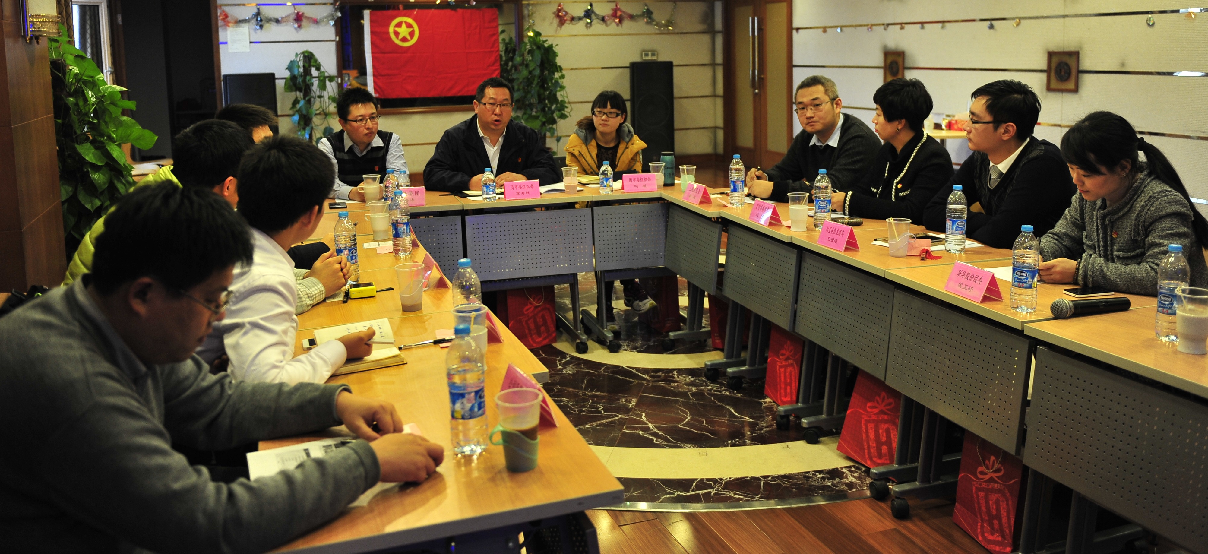 12月8日下午,上海市五四红旗团委创建第十组第三次互评活动在联华总部14楼举行,联华股份团委承办。团市委组织部副部长霍井轶、百联集团团委书记王海涛出席。活动中,包括中建三局团委、上海城市规划设计院团委、上海天原(集团)团委、红星美凯龙团委、东方投资监理团委、联华股份团委、浦东公利医院团委、紫竹高新区团委在内的8家单位,依次对2014年的争创工作进行了总结汇报。最后,霍井轶在讲话中要求,各级团组织继续以“争红创特”活动作为推进基层团组织建设的重要载体,不断总结优秀创建经验、挖掘典型创建案例,为全市范围基层团工作的推进积极贡献力量。
