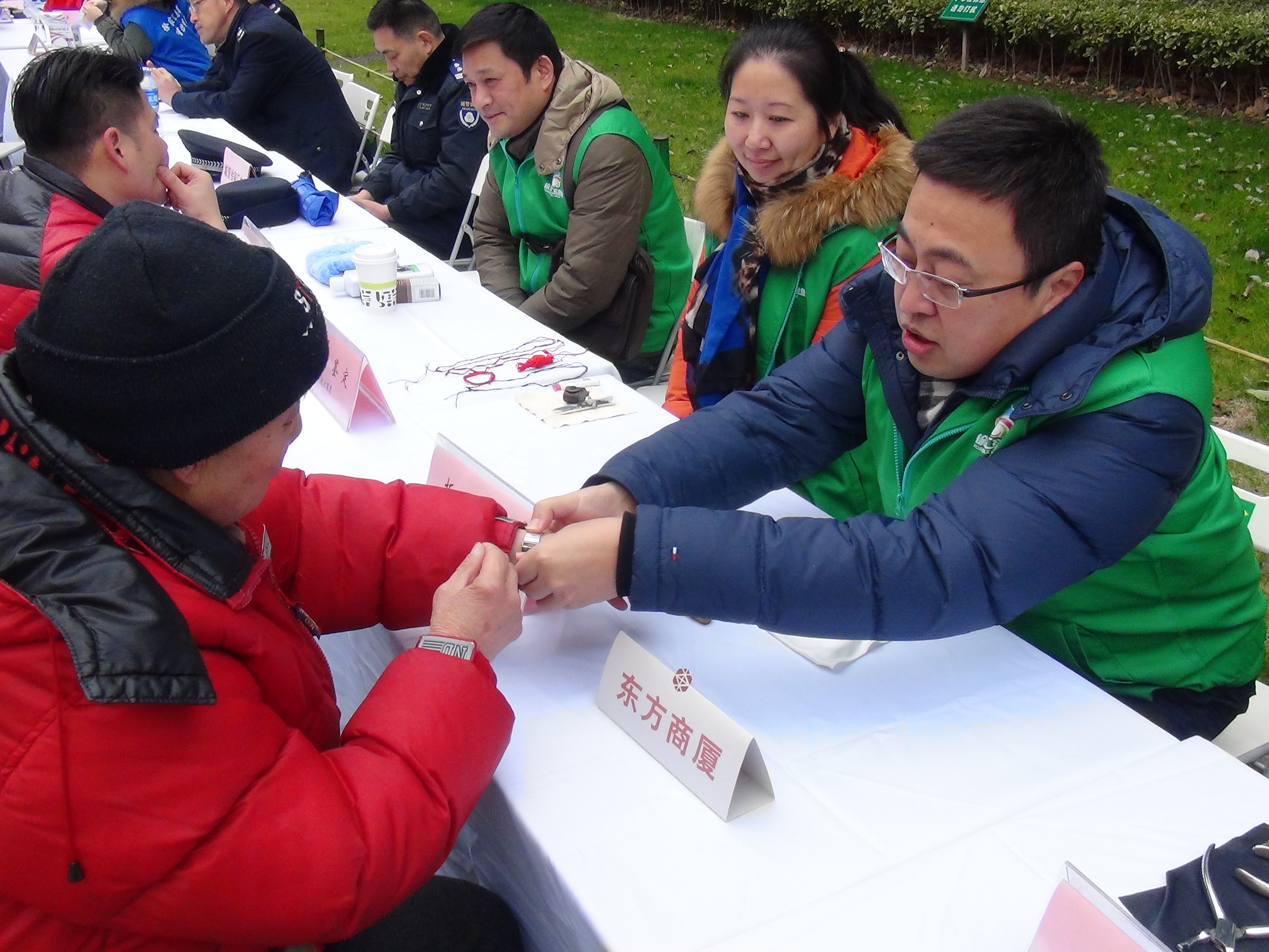 在初春的和煦阳光下,东方商厦的志愿者们带上技能工具,拿出专业绝活为百姓志愿服务。拆装表带、珠宝鉴定、镜架调整、皮具护理等义务便民服务深受居民喜爱。东方的志愿者们用自己的实际行动传递着永不消逝的雷锋精神。