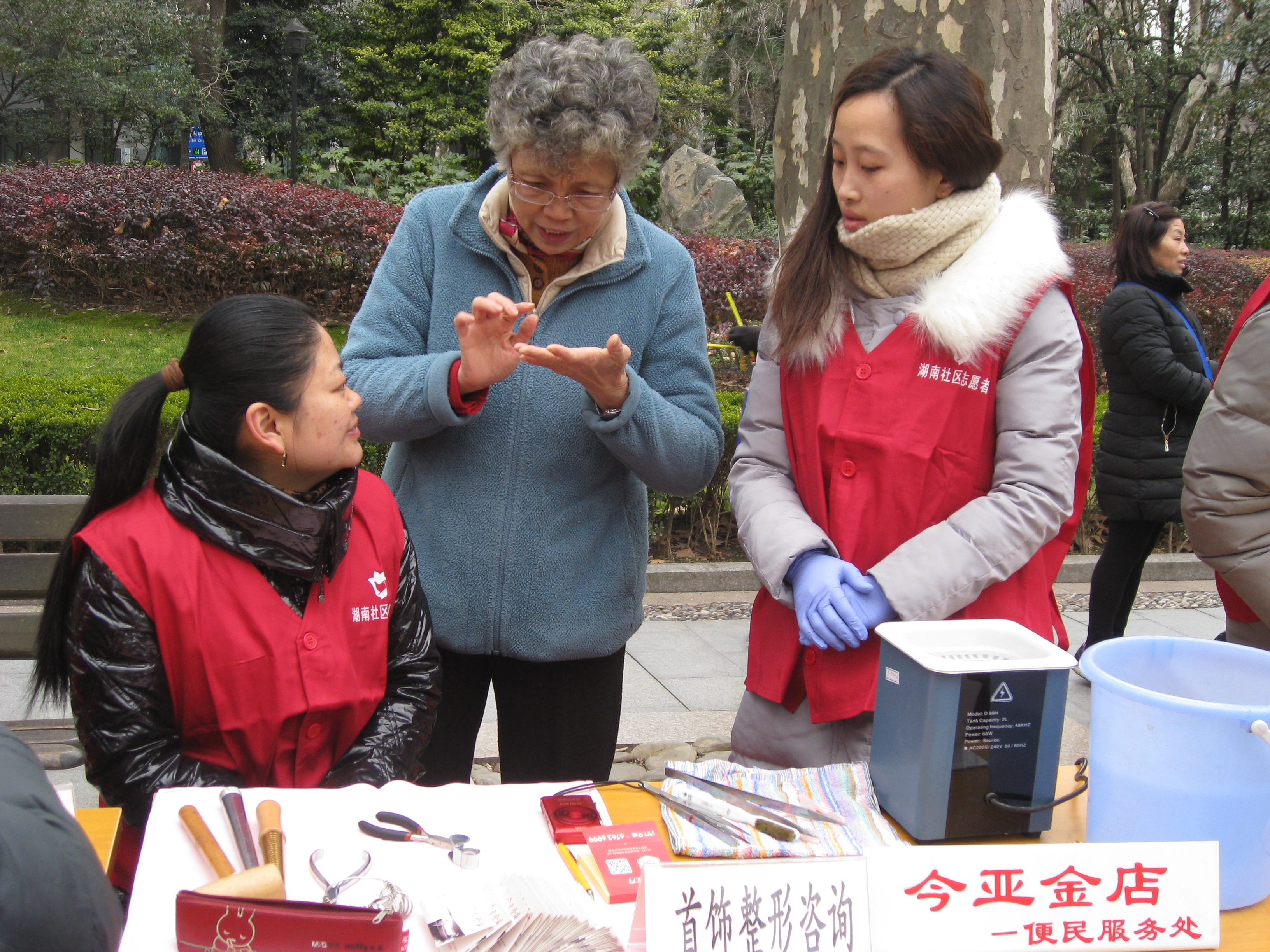 今亚金店一如既往学习弘扬“雷锋精神”,积极践行志愿服务精神,分别参与了由徐汇区总工会、徐汇区湖南街道和徐家汇街道组织开展的“3·5学雷锋”主题活动。3月4日,今亚金店“何玲玲劳模创新工作室”参加了由徐汇区总工会举办的“志愿服务在岗位、劳模先进我先行”活动,劳模工作室的2名青年党团员来到浦东康桥地区进行便民服务,在近一小时的服务中,现场为居民进行首饰清洗和整修近30人次,正逢天冷降温,两位青年仍然坚持以良好的精神状态和保持微笑服务,冒着寒冷,耐心为前来咨询的顾客提供专业的咨询服务。3月5日,今亚金店淮海店3名青年党团员来到湖南街道举办的“弘扬雷锋精神、争做文明使者”的志愿者活动现场,服务现场规模较大,前来咨询和维修首饰的顾客络绎不绝,在一个多小时的现场服务中,今亚为顾客免费首饰清洗和首饰整修达50多人次。当日,还有2名青年党员参加了徐家汇街道沈马居委开展的“学雷锋、树新风”爱心奉献社会为主题的活动。