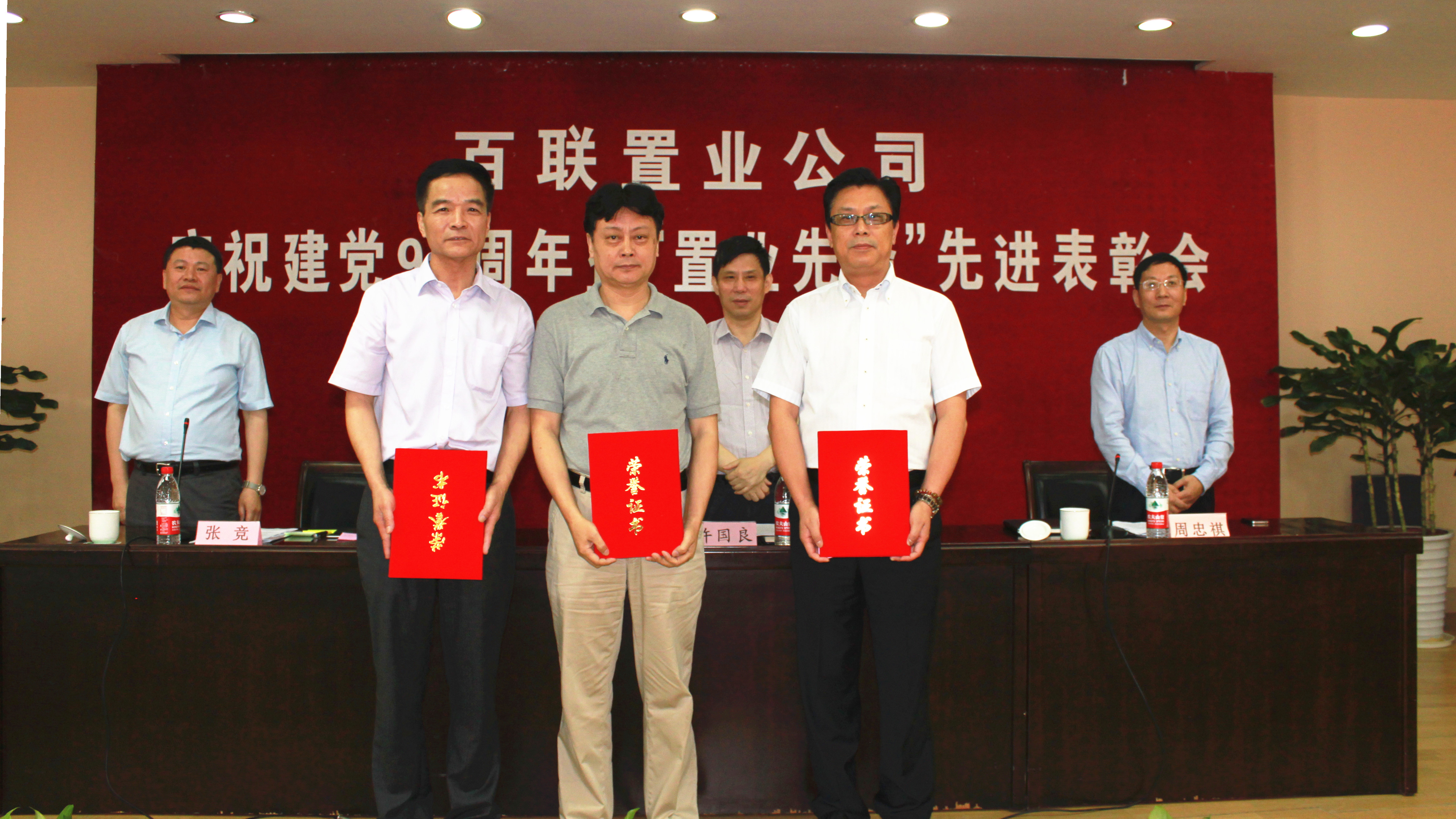 会上,公司党委委员、财务总监周忠祺宣读了公司党委《关于表彰2013-2014年度公司“置业先锋”党内先进集体和优秀个人的决定》,公司领导班子成员向获得优秀共产党员、优秀党务工作者、优秀青年党员和先进基层党组织的先进个人和集体颁发了荣誉证书。