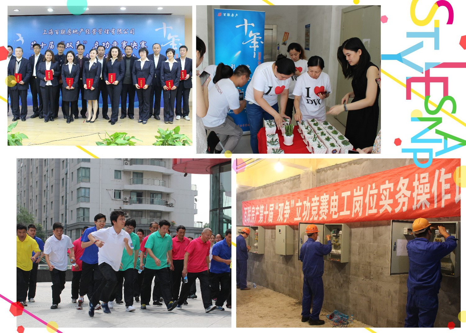2015年是百联房产成立的第十年。十年来,在历任领导及广大员工的精耕细作下,业绩节节攀升,创出了不少佳绩也涌现了很多先进个人。公司以“精彩有你,梦在路上”为主题开展十周年庆系列活动。主旨在于回顾企业发展轨迹,感谢风雨同舟、辛勤工作的广大员工,并与员工一起展望公司未来发展的美好前景。系列活动坚持隆重、热烈、节俭、实效的原则, 同时落点3个维度:感恩、趣味、经营,力争全面覆盖,让每位员工都参与其中,提高员工对企业的认同和归属感。