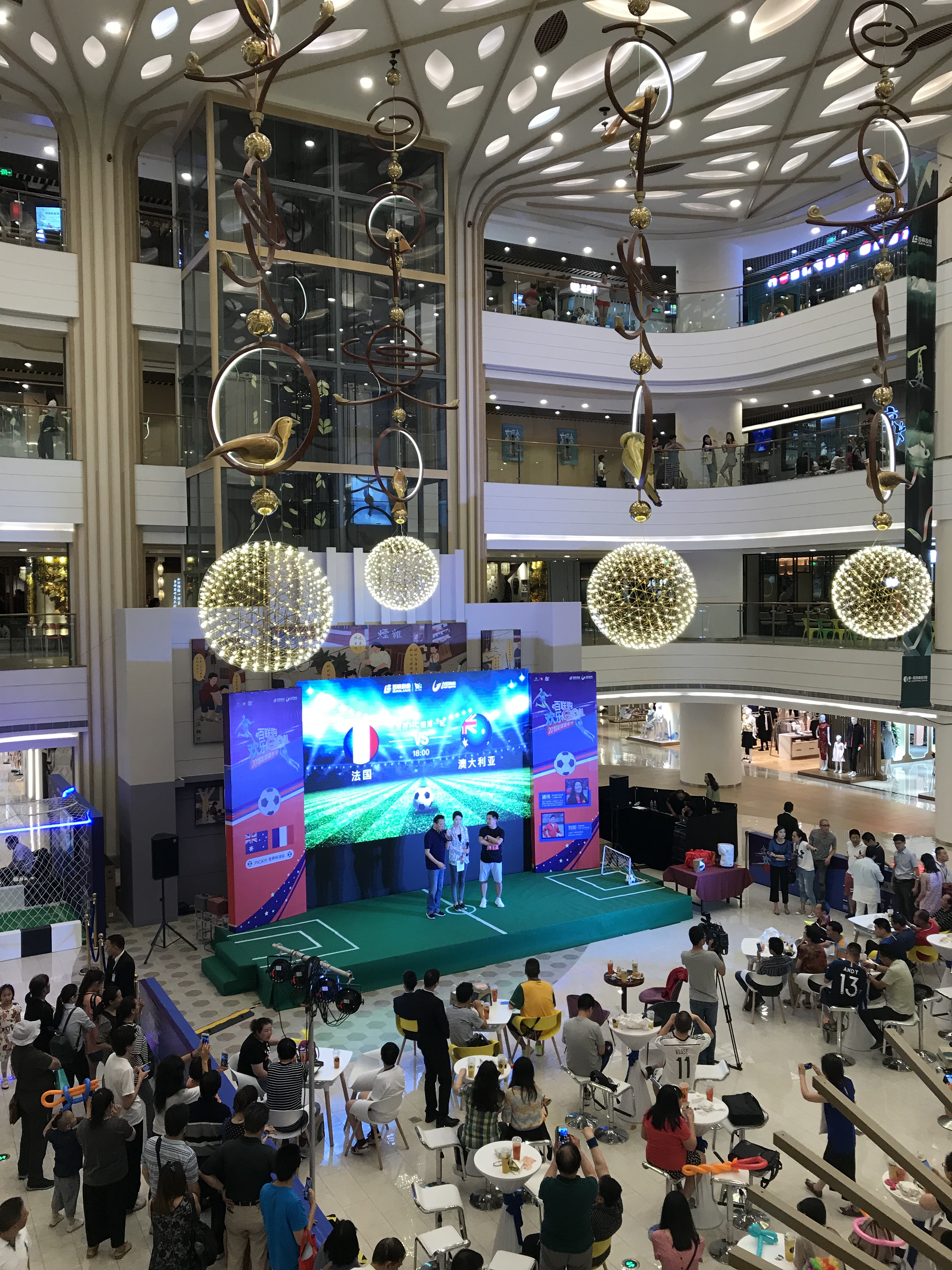 活动现场,主办方贴心地准备了各种精彩互动,VR足球体验让小朋友们痛快玩耍,沪上知名笑星毛猛达在现场与球迷热情互动。直播开始之后,大家都屏气凝神地观看大屏幕,传球时捏了一把汗,进球时忍不住欢呼雀跃,加上主持人和浦玮的专业解说,将现场气氛推至了高潮。据悉,活动当天,第一百货商业中心客流环比上升14%,现场人气十足,热闹不已。