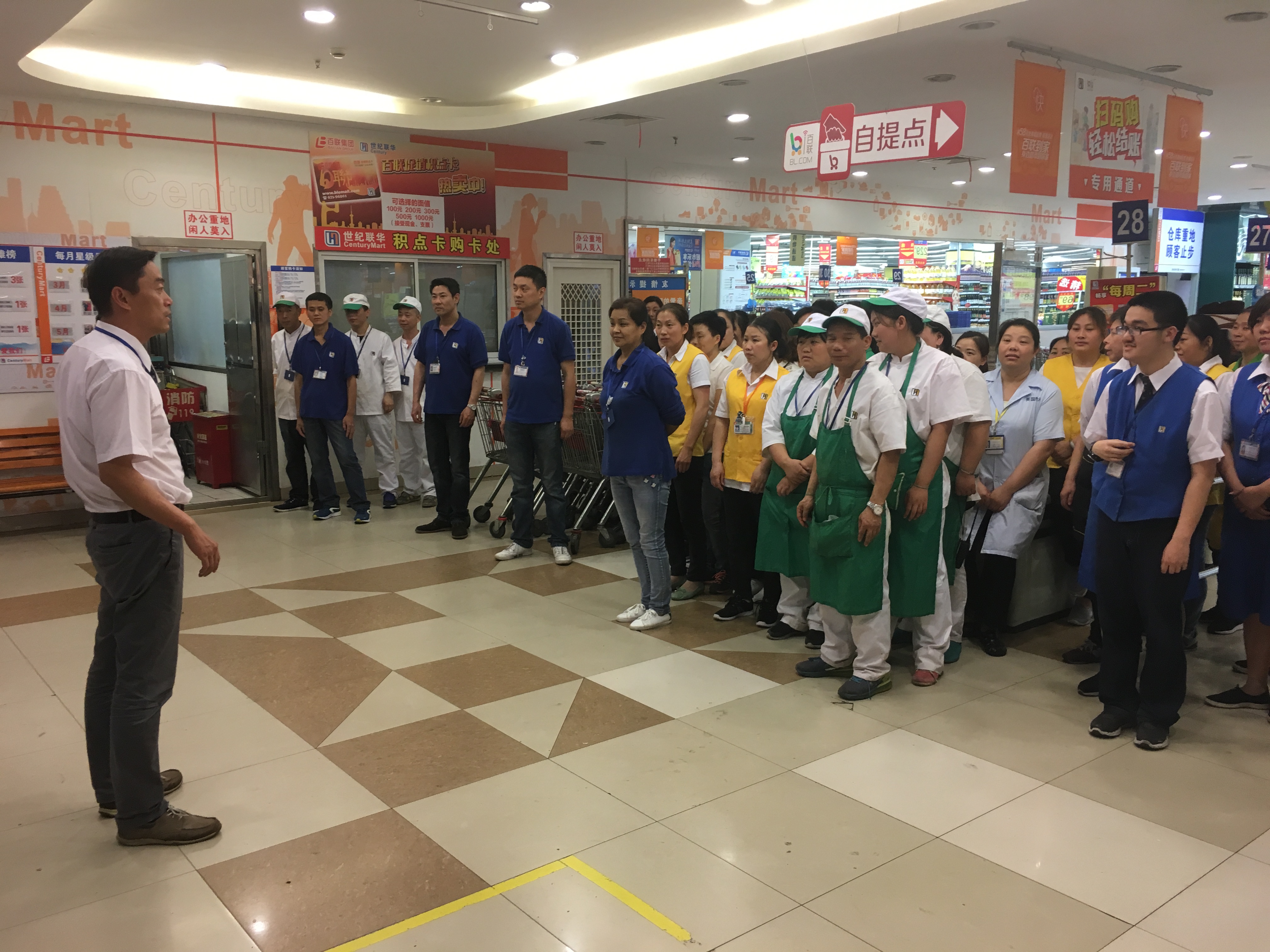 6月9日,世纪联华中环店开展了2018年突发大面积积水演练。演练人员范围覆盖门店各部门员工。