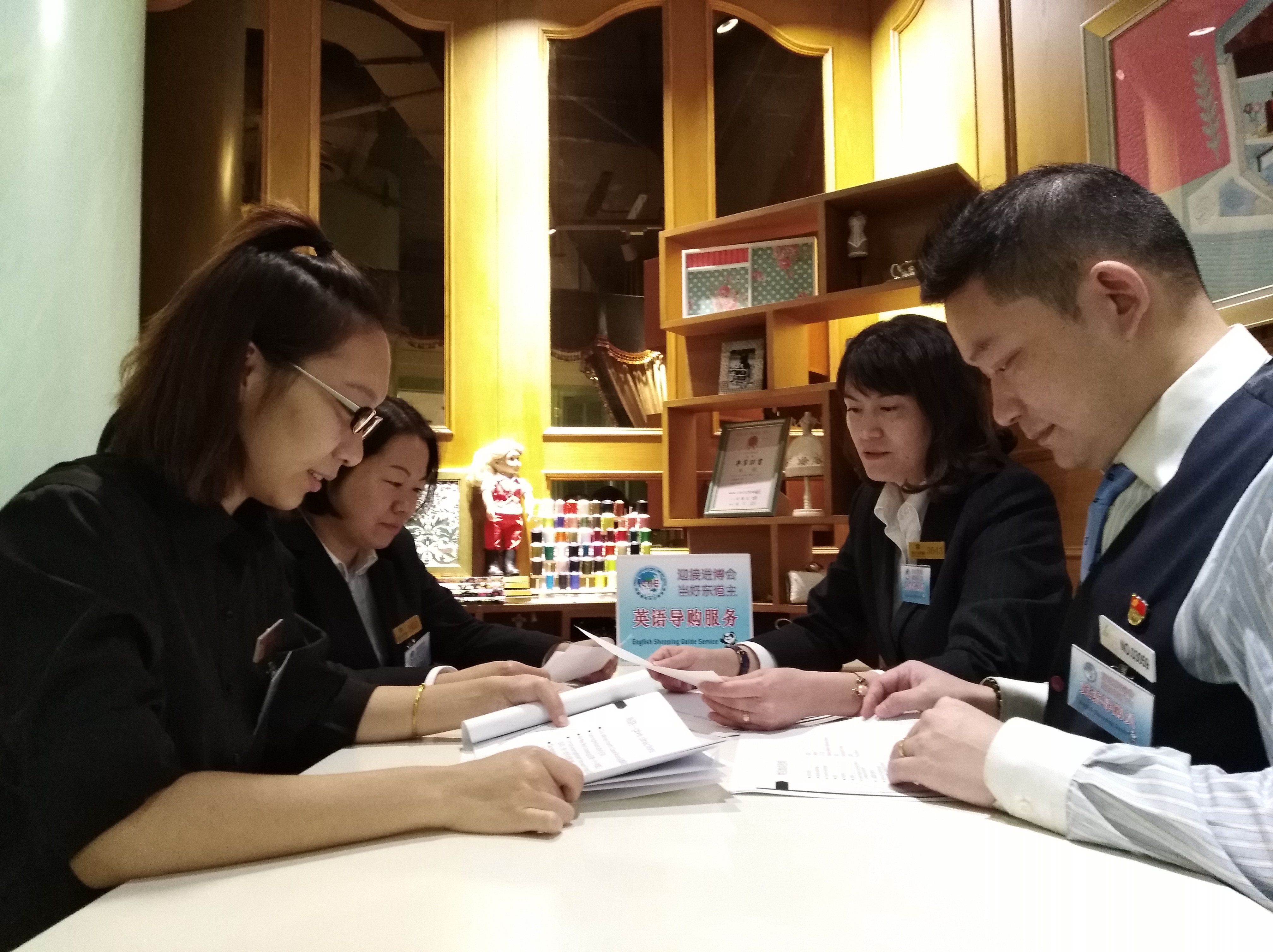 通过近期英语导购挂牌服务,公司整体服务技能有了进一步提升。以点代面,在导购员的带领下,公司全体员工将以“进博会”为契机,以“礼在东方 自在眼光”的服务理念迎接四海来宾。