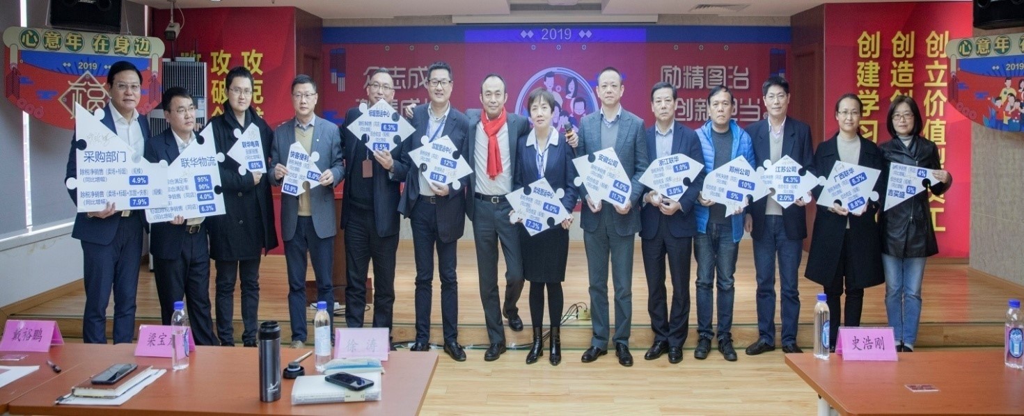 公司总经理徐涛充分肯定了全体干部员工的拼搏精神,感谢干部员工们的努力付出!他围绕“长三角区域领先的,满足消费者品质需求为己任的全渠道零售商”的愿景,以“诚信可靠,乐于分享,人情交融,生活灵感”的品牌特性,提出了业态和终端模型及拓展、品类规划及供应链打造、自有品牌、卓越执行、品牌焕新、激励机制和企业文化、数字化驱动等五大工作重点+双轮驱动,为干部员工明晰了2019年公司的经营思路和方向。希望大家众志成城、激情成长,带给团队正能量,坚定不移、敢于担当,点燃联华每一位员工的热情和激情,向着2019年公司经营目标进发!