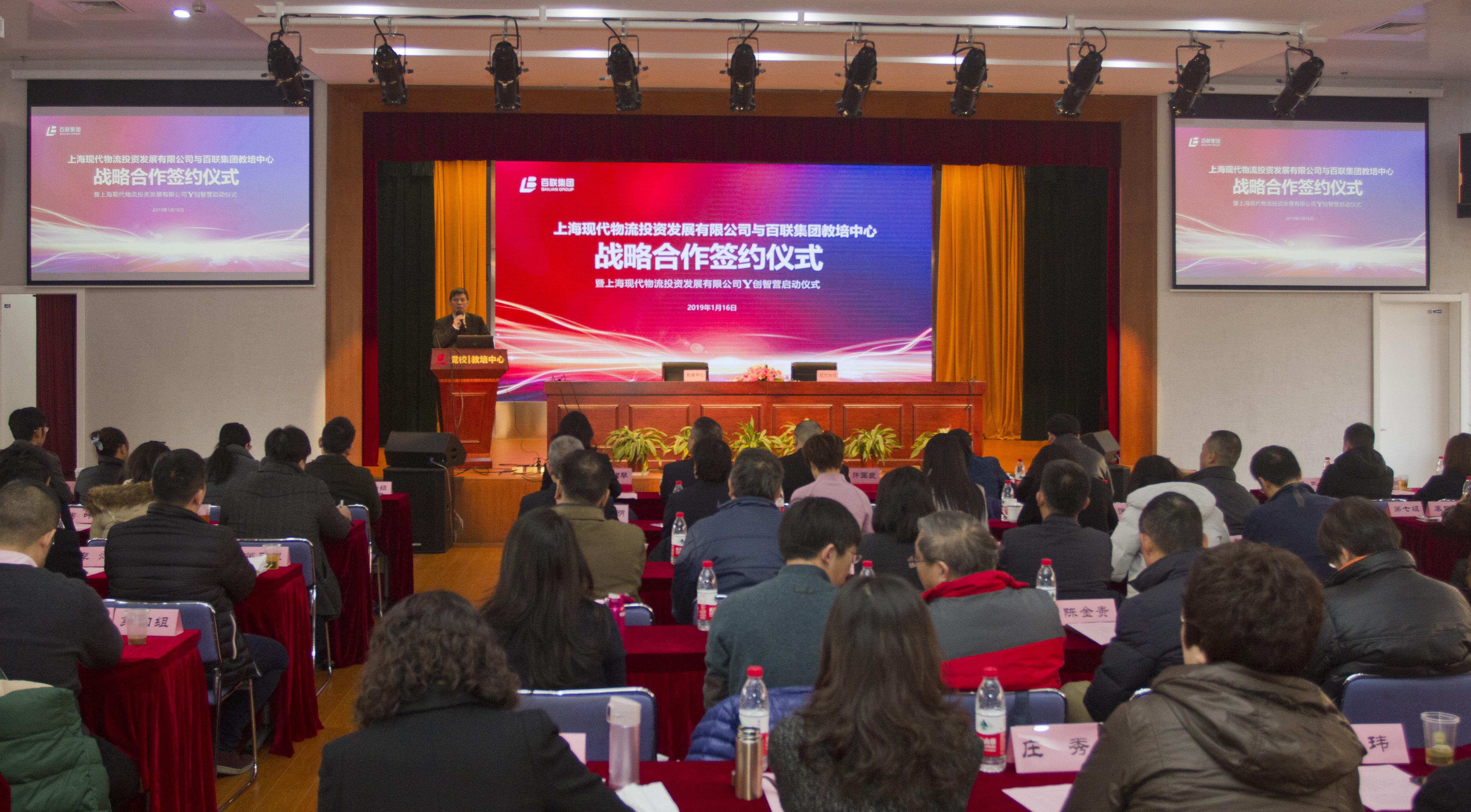 1月16日,现代物流和百联教培中心在百联教培中心报告厅举行了“现代物流与教培中心的战略合作签约仪式暨现代物流鲶鱼激活计划Y创智营的启动仪式”。集团党委副书记、工会主席许国良、集团副总裁、现代物流董事长孙丰、集团组织干部部部长潘敏、现代物流、教培中心的党政班子成员、相关部室负责人,各三级公司党、政、工、团负责人,以及首批“鲶鱼激活计划”的青年骨干团队63位学员和课题导师们应邀出席。