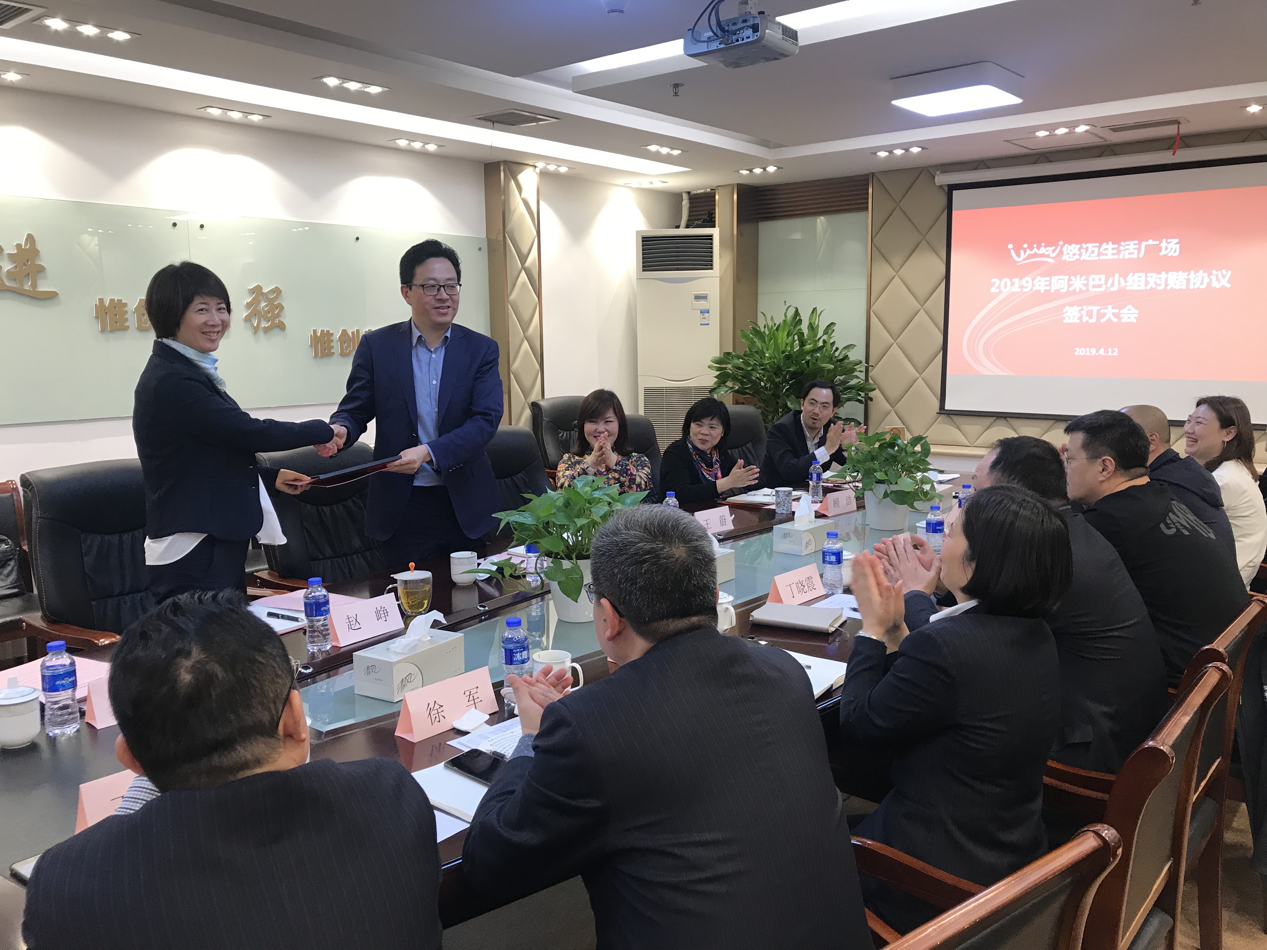 悠迈生活广场是百联股份旗下首家价值百货门店。为了充分挖掘百货事业部内部和悠迈生活广场的潜力,提升员工积极性,有力推进业务发展,力争完成2019年业绩考核任务,近期,由百联股份百货事业部招商团队和悠迈生活广场经营团队,成立了阿米巴小组,并签订了“业绩专项考核协议”。