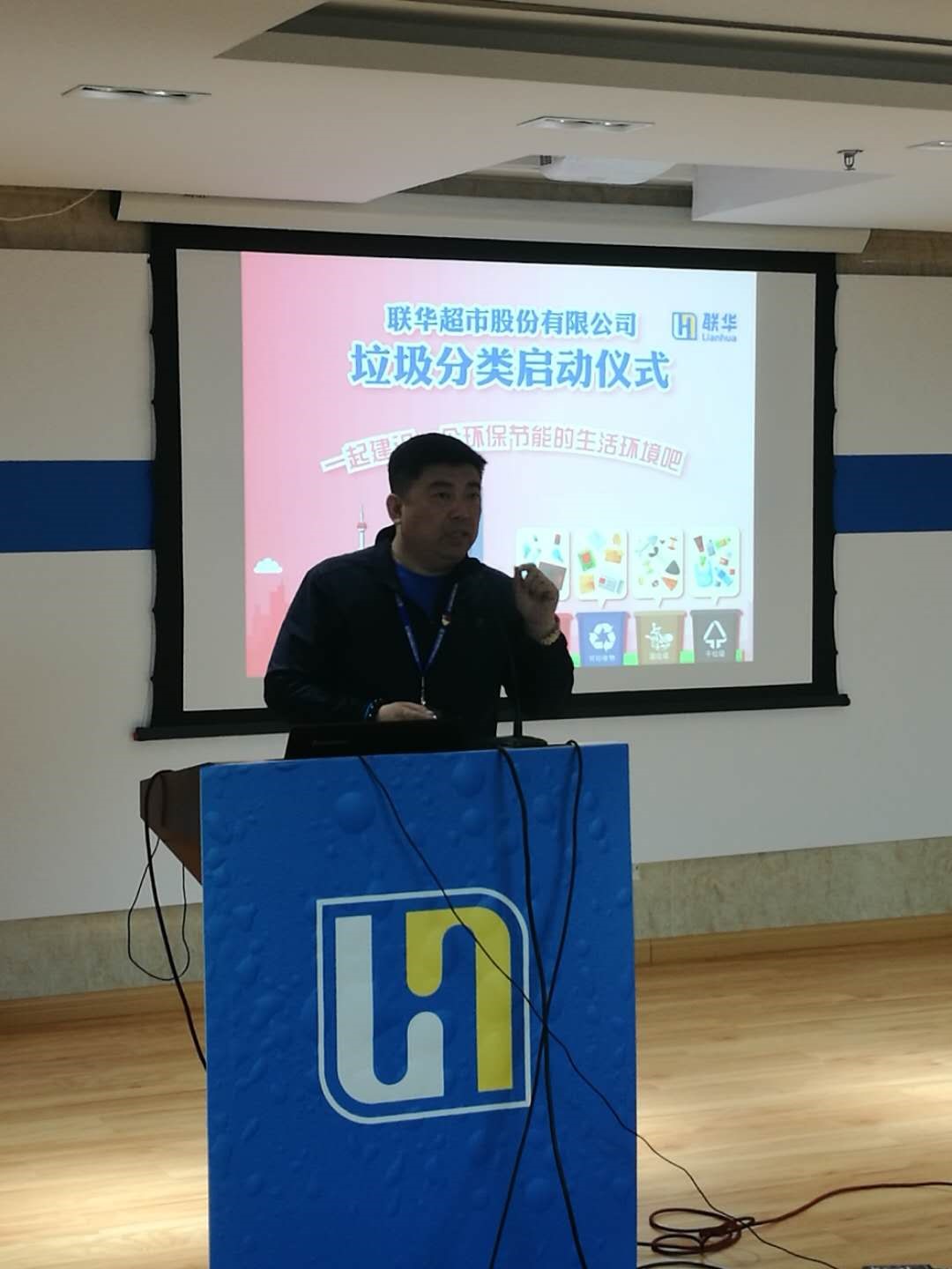4月28日,联华股份召开垃圾分类启动大会,营运中心(上海)、吉买盛、快客、江桥物流等公司业态主要负责人、区域经理、门店店长、总部相关职能部室负责人共130多人出席了大会。