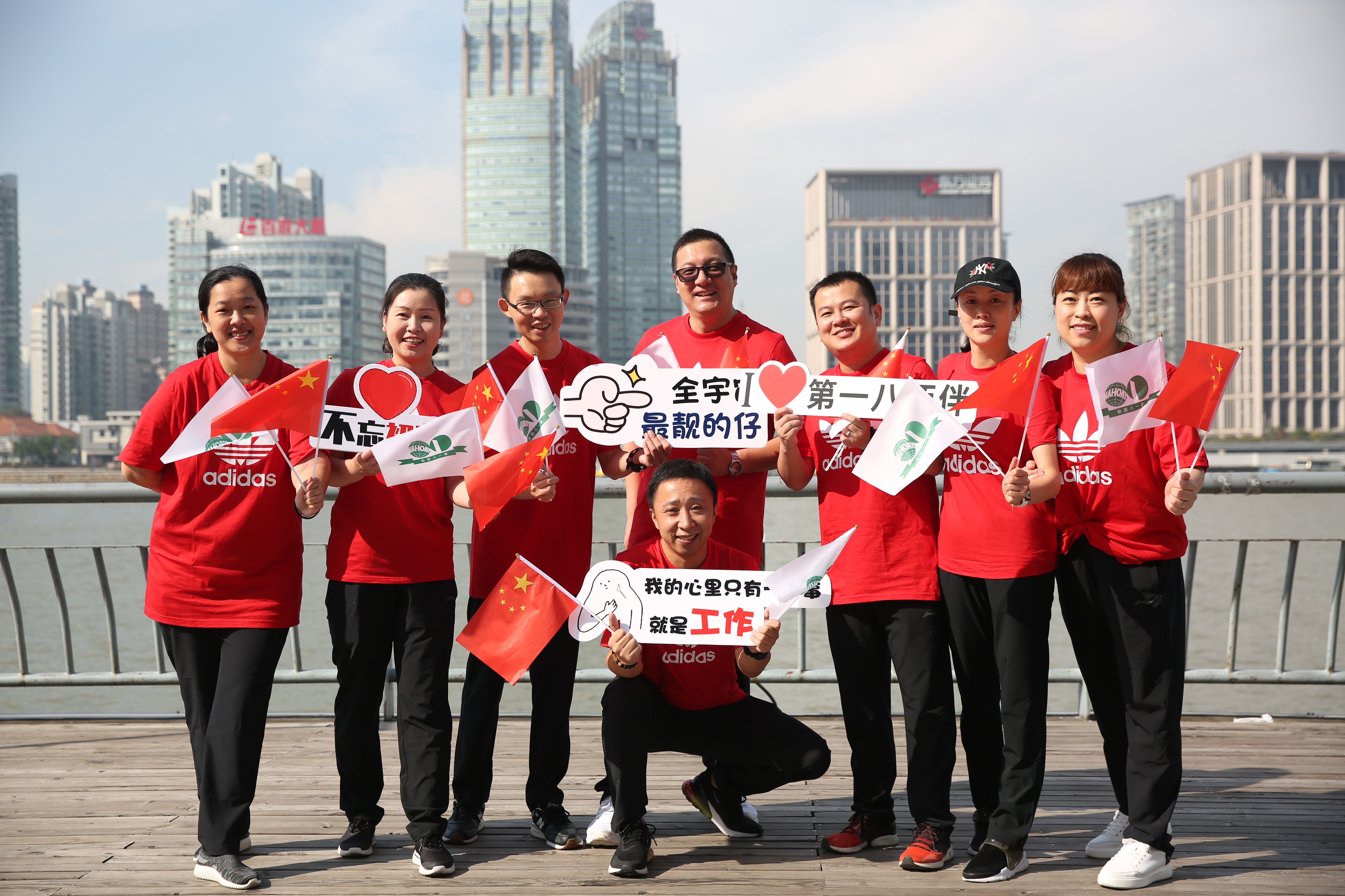 “起来,不愿做奴隶的人们,把我们的血肉筑成我们新的长城……”在庄严的国歌声中,五星红旗冉冉升起。大家把两面旗帜郑重地放在自己胸前,整齐划一地唱响了国歌。升旗仪式后,公司党委书记吉芯芯代表公司领导班子致辞。她表示,第一八佰伴人今天用自己的方式向国庆献礼。祖国是“大家”,企业是“小家”,有了“大家”的繁荣强盛,才有“小家”的持续发展。在第一八佰伴“创新转型,再提升、再优化”的关键时期,全体员工要继续秉承百联文化价值体系,点燃激情,实现再跨越。随后,伴随着发令枪响,7支队伍依次出发,开始3公里健步走。