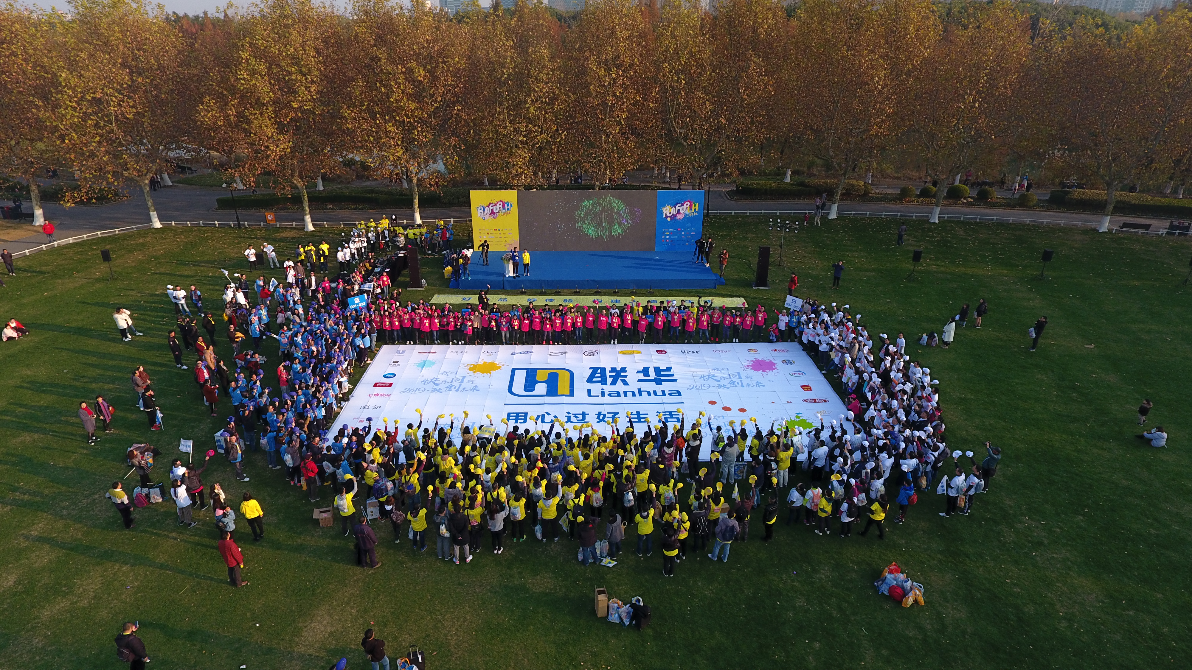 “砰——!”随着一声发令枪响,全体参赛者激情出发。100支队伍,500人,100分钟,按照服装颜色的路线,兵分三路前往任务点打卡闯关。前有竞争激烈的挑战赛,后有热闹非凡的主会场。整个活动精彩不断,彩蛋不断。为了增加活动的趣味性和参与度,不仅在赛程中有丰富的竞技小游戏,还有内部员工上台表演助威,当天生日的参赛者,组委会还准备了一份生日惊喜。本次聚力挑战赛,结合联华2019年品牌焕新,在主会场准备了一副200平方米的联华司标拼图,需要参赛者们经过分工、沟通、协作,共同完成。寓意在联华成长的道路上添砖加瓦,聚力同行。最后所有参赛者站在拼图前,勾勒出联华人对联华最真挚的情感,也诠释了联华与消费者、供应商一起用心过好生活的场景。