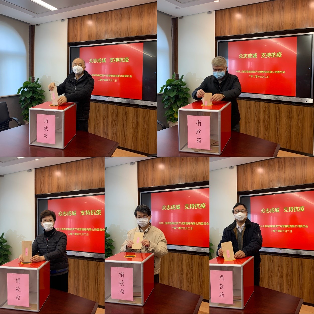 3月2日上午,百联资产党政班子成员带头捐款,各基层党支部组织党员分别通过现金、微信或支付宝等形式,开展党员自愿捐款活动,积极响应中央号召,用实际行动支持抗疫,支援武汉。
