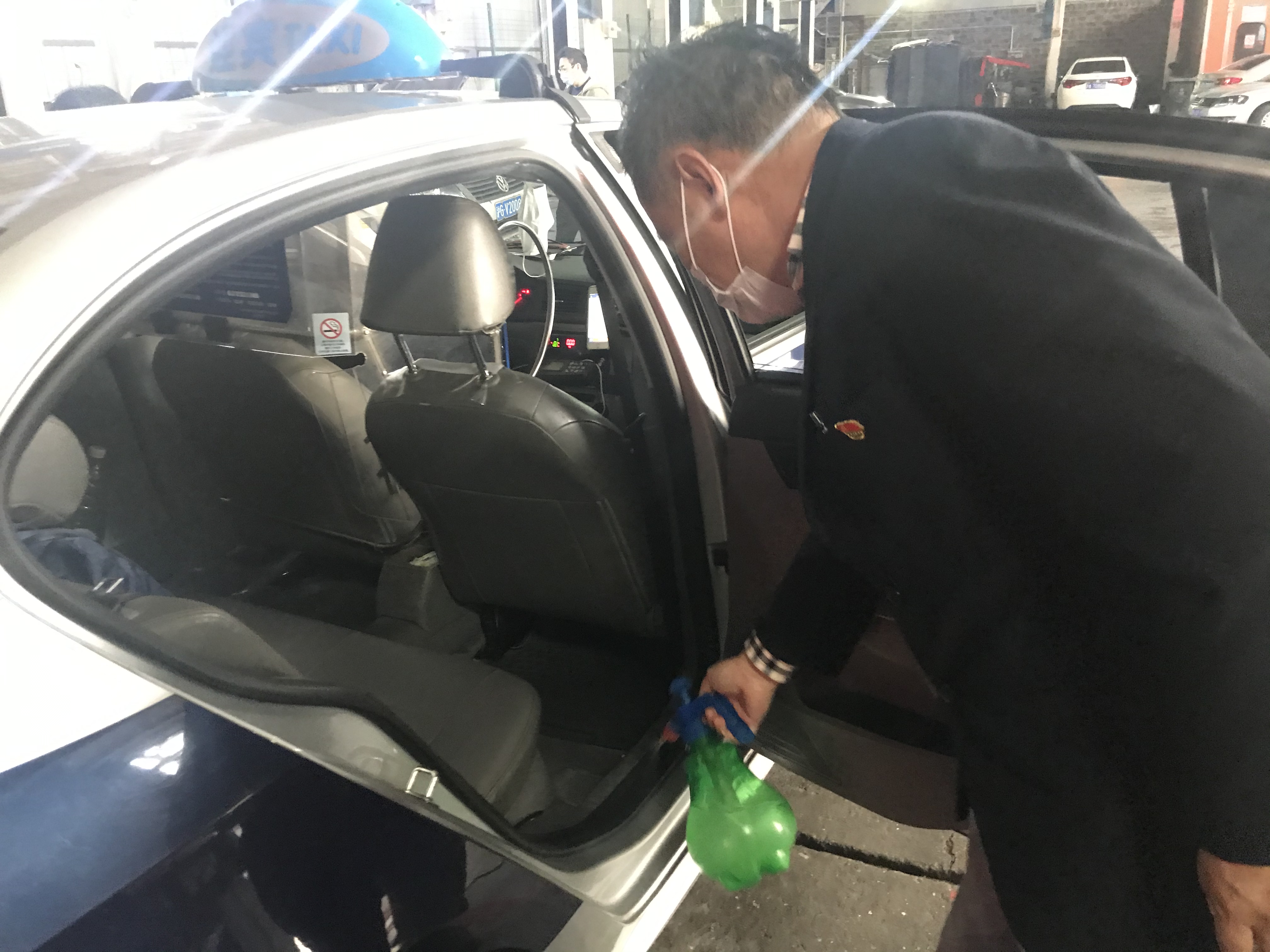 迎宾出租自1月22日就成立了联防联控紧急领导小组和工作小组,一是坚持为每辆进场车辆进行消毒、贴消毒标识,让乘客识别放心;二是每天为所有营运驾驶员免费提供随车携带的消毒液,要求营运车辆驾驶员做到“一车次一消毒”,在营运中保持车辆通风,“口上戴罩、手上提壶、严格防疫”,确保自己及乘客的健康安全;三是在全部营运车辆上统一张贴了“乘车登记码”,乘客配合扫码进行身份信息登记,便于疫情期间,对发现病情实现相关人员可追溯。