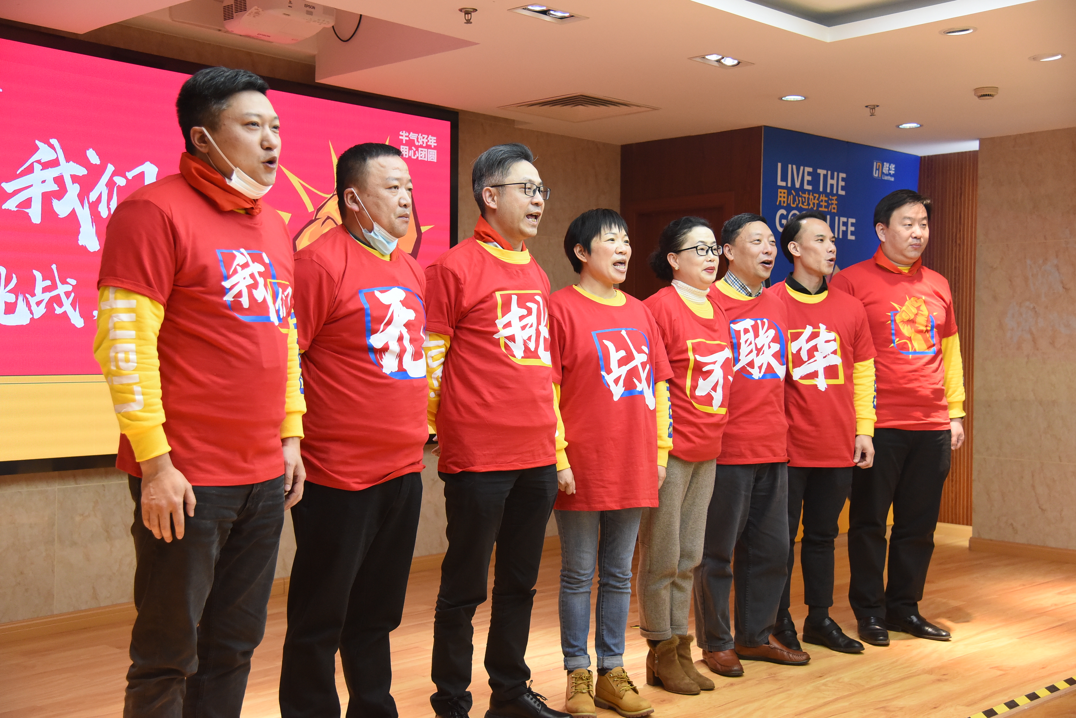 会议最后,全体成员共同唱响《不放弃》,联华人共同展望2021,迈进新征程,我们,无挑战,不联华。