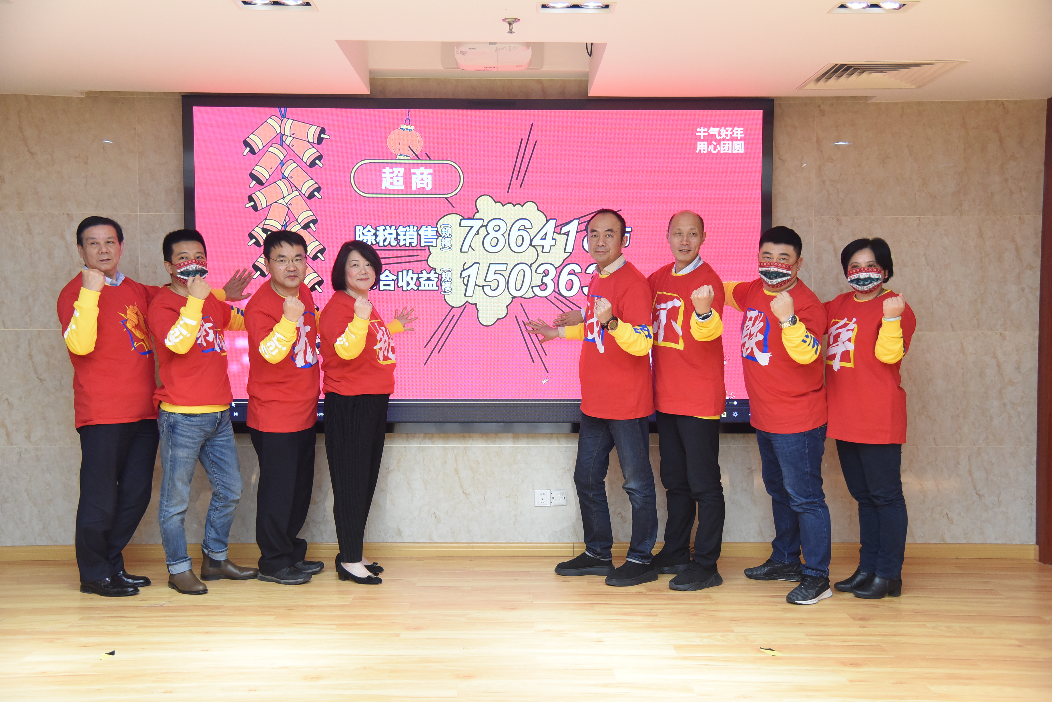 动员大会上,营销、电商、商品、物流、营运板块依次作了2021年全国CNY工作部署,人力资源部和工会发布了2021年CNY激励方案和劳动竞赛方案。紧接着,总经理徐涛向各经营部门下达了2021CNY目标任务,并和班子成员一起,点亮了超商整体目标。
