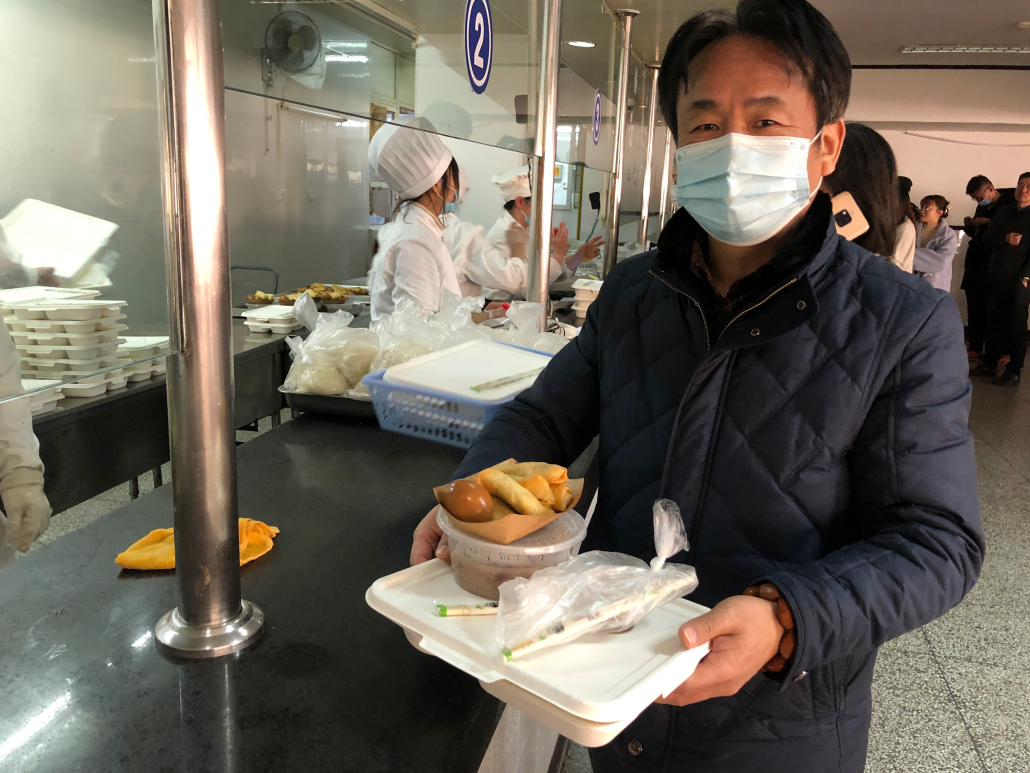 物贸大厦工作人员在食堂将熬好的热腾腾的腊八粥一份份打包好,并根据客户的要求配成了套餐,为保障疫情期间的安全,由楼宇内各企业派代表前往食堂有序领取,将近一个半小时,近120碗腊八粥、720余根春卷、120只鸡蛋被发放到大楼内约100多位客户、职工手中,真正形成了“我们一起过腊八”的幸福场面,也带来了浓浓的年味。