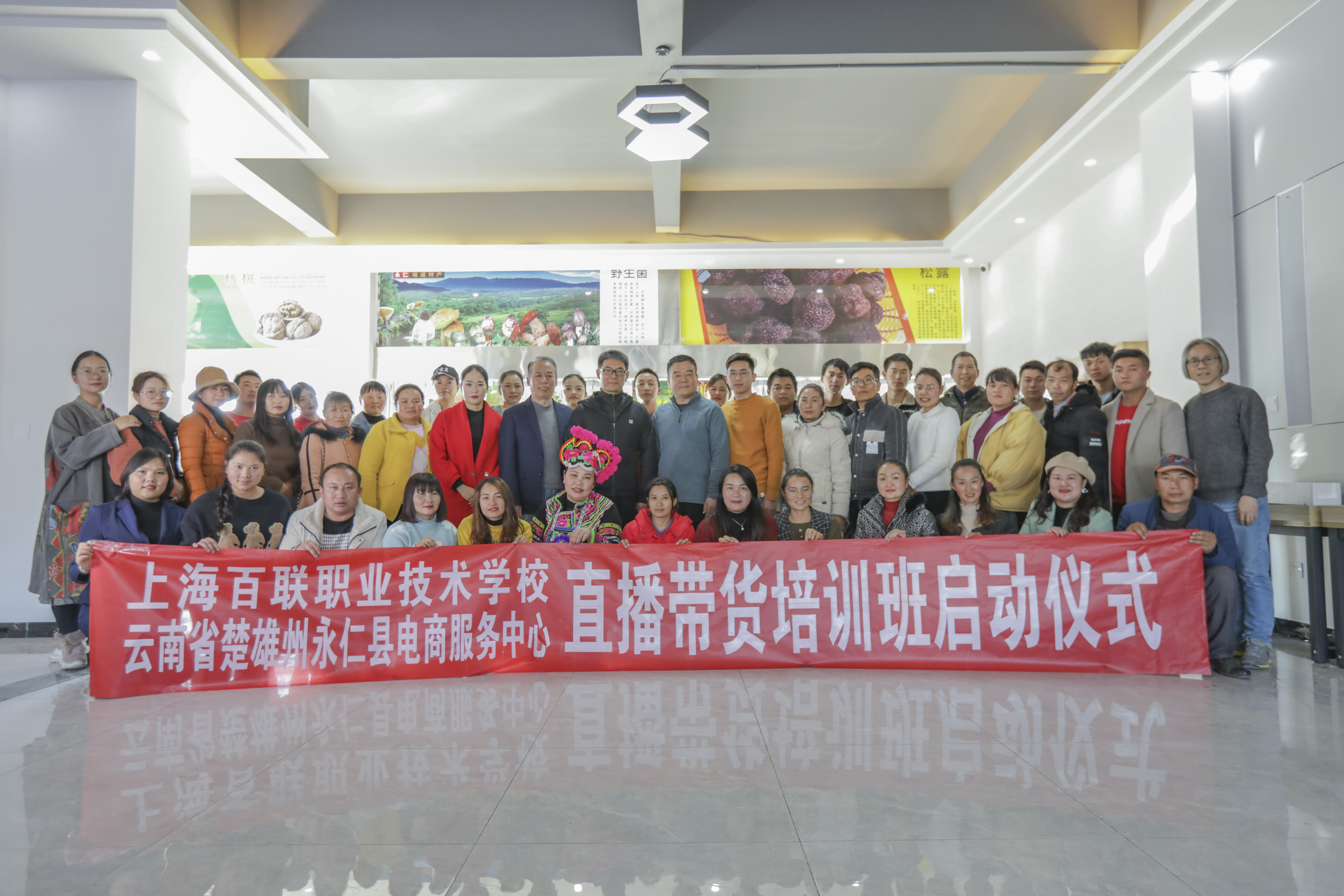 直播培训显创新。除了对下一代的教育帮扶之外,现代流通学校在“造血式”培训帮扶方面做了新的尝试。2020年11月,现代流通学校在沪云南学生的技能培训中,了解到永仁乡村家庭的农特产品大多以个体直播为推销载体,特别是永仁县松露产量高达50多吨,占中国松露年产总量的25%,但藏在深山人不知。学校主动与永仁县扶贫办取得联系,出台了 “滇货名品 直播带货 技能立身 振兴乡村”为主题的电商人员直播技能培训方案。