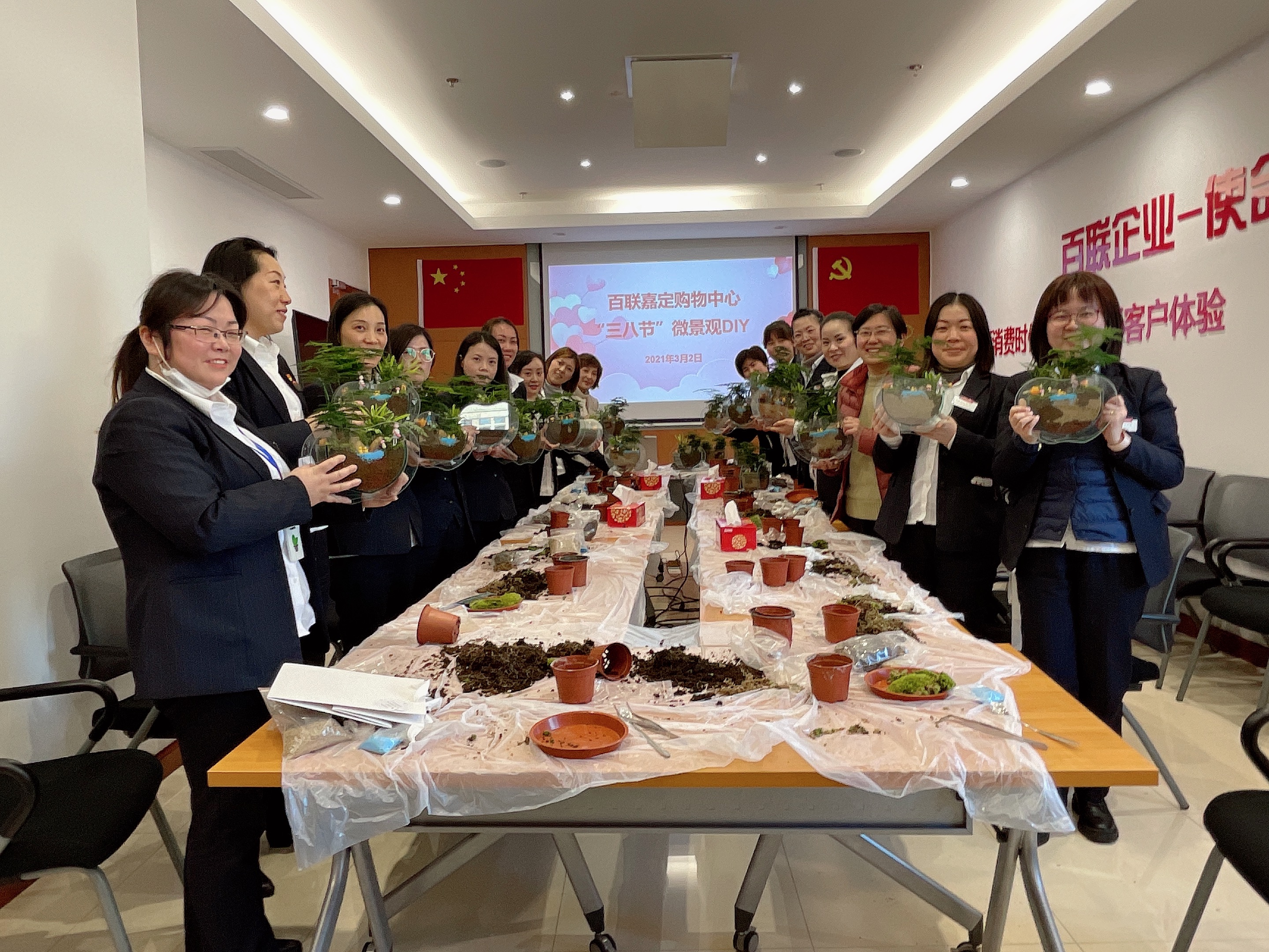 3月2日下午,百联嘉定购物中心工会组织开展了“三八节”微景观DIY活动,共有20名女职工积极报名参加。