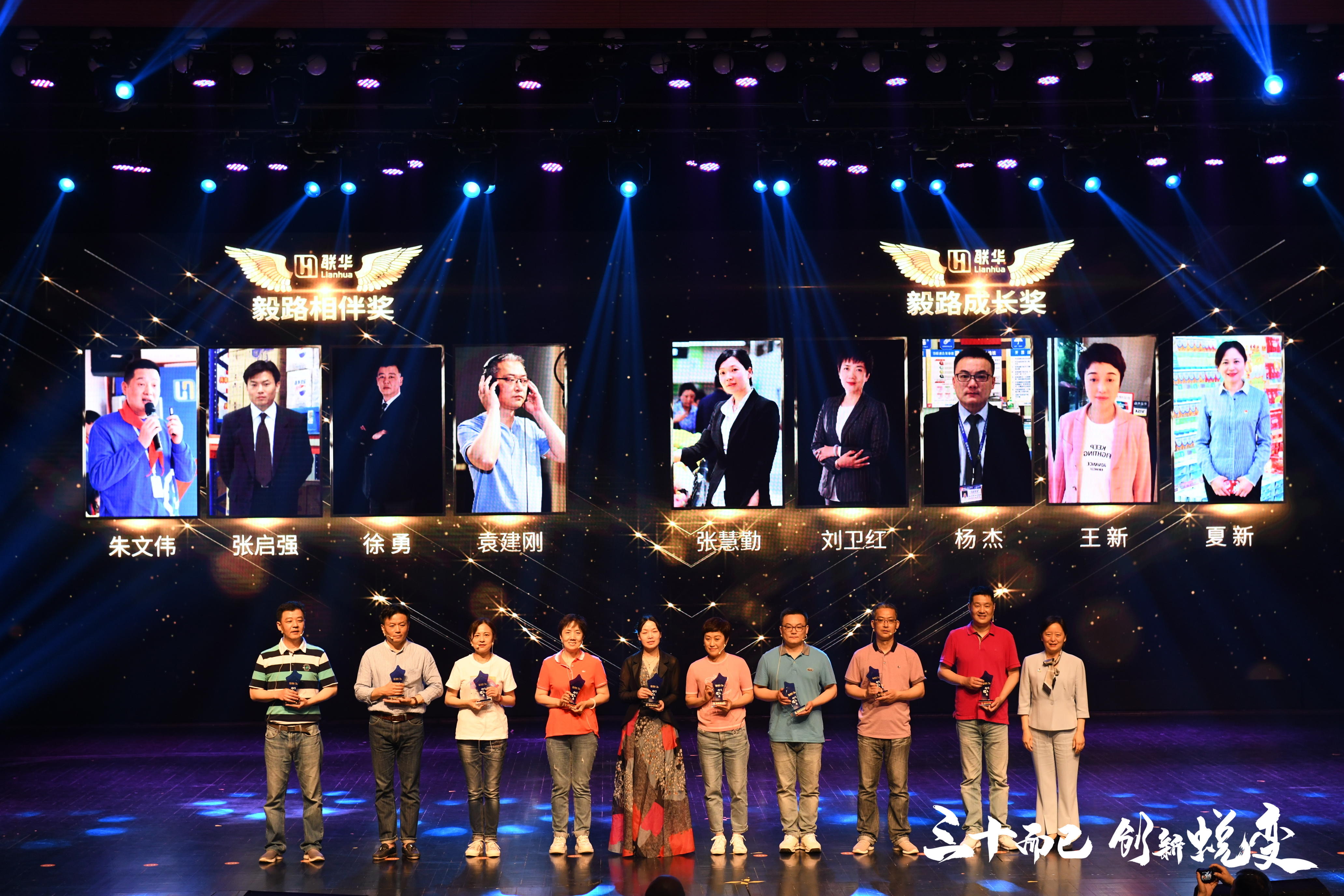 盛典上,联华股份还对各类代表进行了表彰,向张慧勤等劳模代表颁发了“毅路成长奖”,向陪伴联华走过30年的老员工颁发了“毅路相伴奖”,向业主、合资方、加盟商、招商户、优质供应商以及30名劳务工和厂方促销员代表颁发了“毅路同行奖”,向在联华30年发展历程中做出卓越贡献的浙江公司颁发了“卓越功勋奖”。