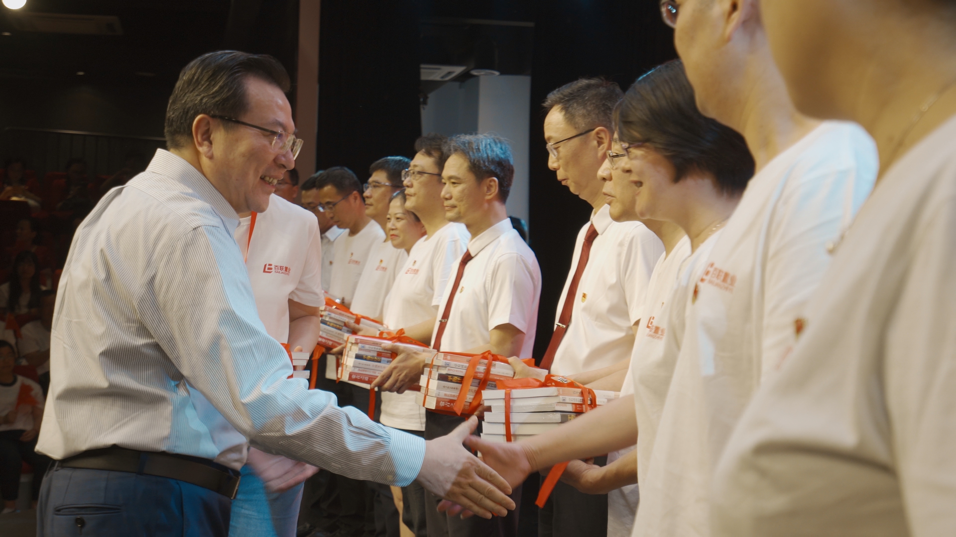 会上,秦青林将公司党委精心挑选的好书作为一份特殊的生日礼物赠送给与会党员和各党支部,引导全体党员以集团品牌焕新、公司大楼形象焕新为契机,努力实现思想焕新,为百联集团的新一轮发展勇立新功。