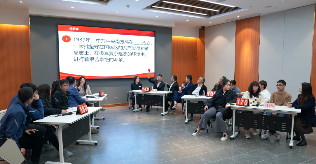 为检验学习成果、调动学习热情,11月18日下午,物贸股份党委以“现场+云互动”的方式,举办了一场围绕共产党人精神谱系宣讲而开展的知识竞答比赛,掀起了新的学习热潮。竞答比赛选手中,有的是直属企业的党办主任,有的是基层党支部书记,更多的是一线的员工,其中既有党龄23年的担任安保工作的老党员,也有新入职不满半年的90后团员青年。
