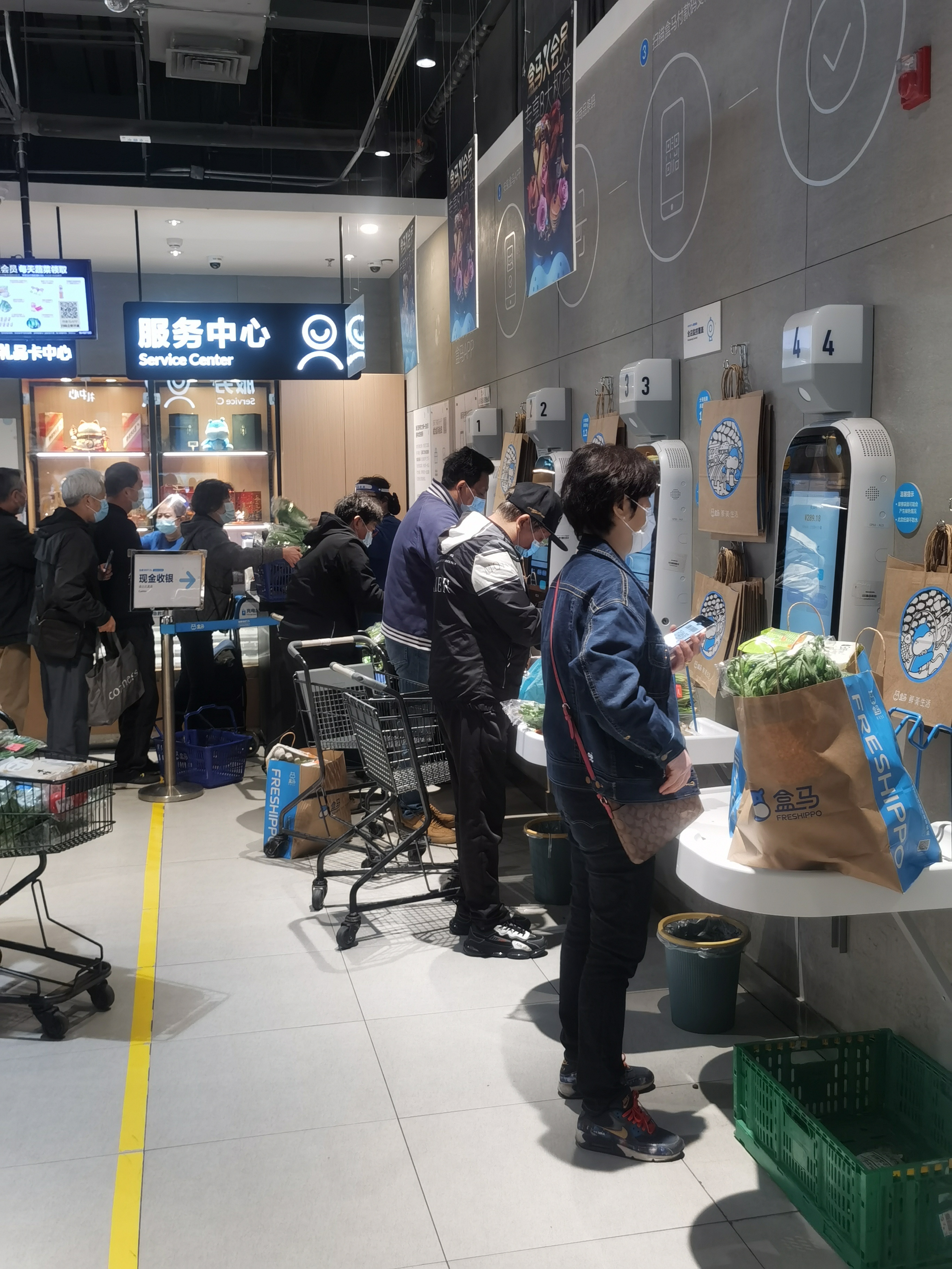 28日早晨开店,顾客直冲RISO全食市集,货架上的蔬菜很快就见底了。来自总部和世纪店的员工,还有来自又一城党员先锋队及职能部室的员工,同心援手;收银机器全开,运营安全有序;最终顺利扛过了开门后的一波波采购高峰。
