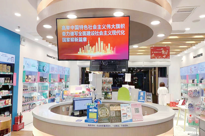 第一医药友谊路药房,坐落在宝山区的一家社区医保门店。多年的“和气”经营,培育了众多忠实客户,喜迎党的二十大期间,店长特意在店内营造党的二十大的宣传氛围,喜庆的色彩,吸引很多周边社区居民入店。
