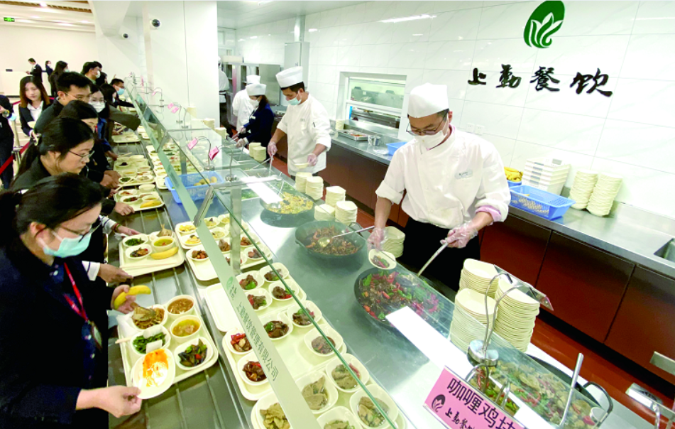 “今天的梅菜扣肉真不错!”“手工小笼包新鲜出炉,快尝尝吧!”近日,集团总部食堂经过重装升级后焕新开业。窗明几净的就餐环境、品类多样的餐食选择,都让就餐者眼前一亮。