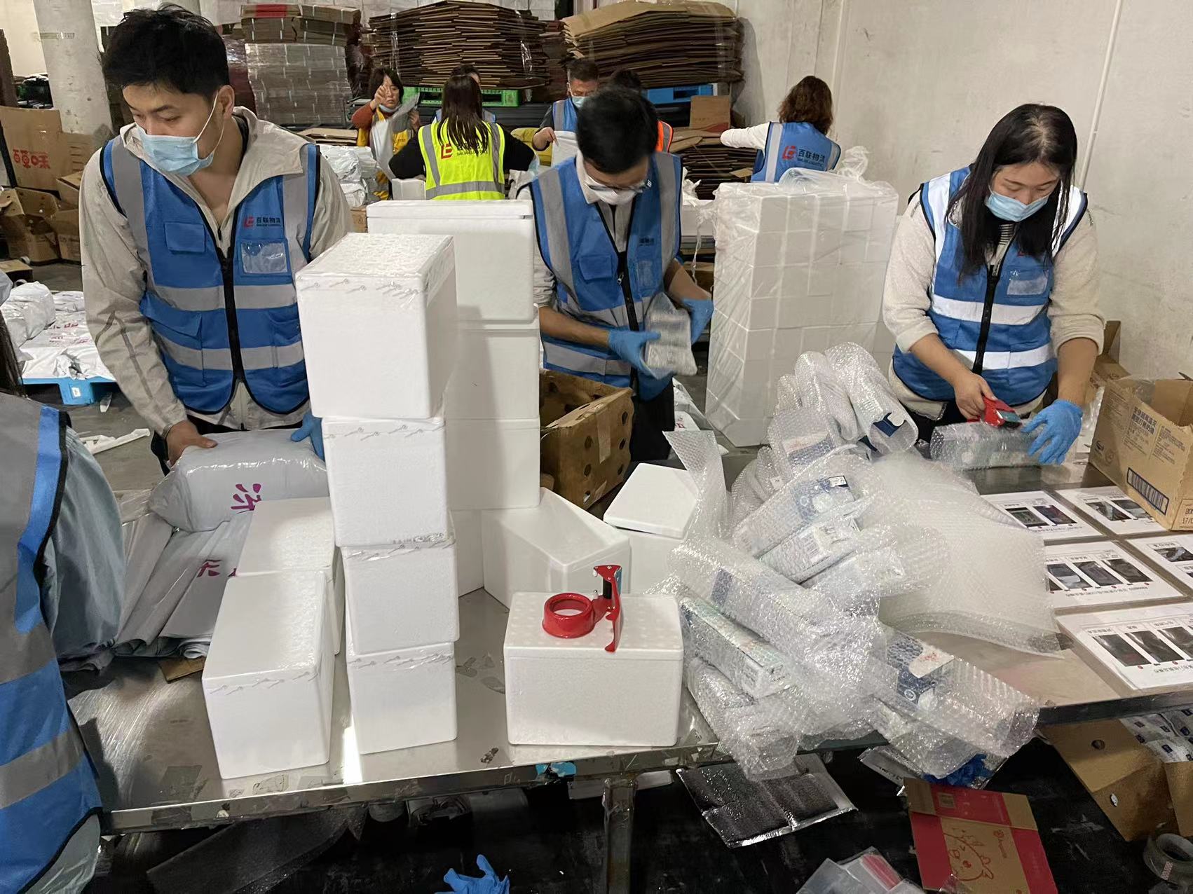在严格落实常态化疫情防控措施的前提下,公司所属新零售物流事业部电商项目团队紧紧贴合客户需求,针对业务运作中的痛点、难点问题,升级更新智慧物流解决方案,并结合效率差异,设置多任务小组,及时补位,调节忙闲。同时,视情况延长大促期间自动化流水线的运行时长,通过流程再造优化,进一步加快线上仓打包速度,在单量激增的情况下依然能够出色完成客户提出的KPI要求,确保服务质量“不打折”。