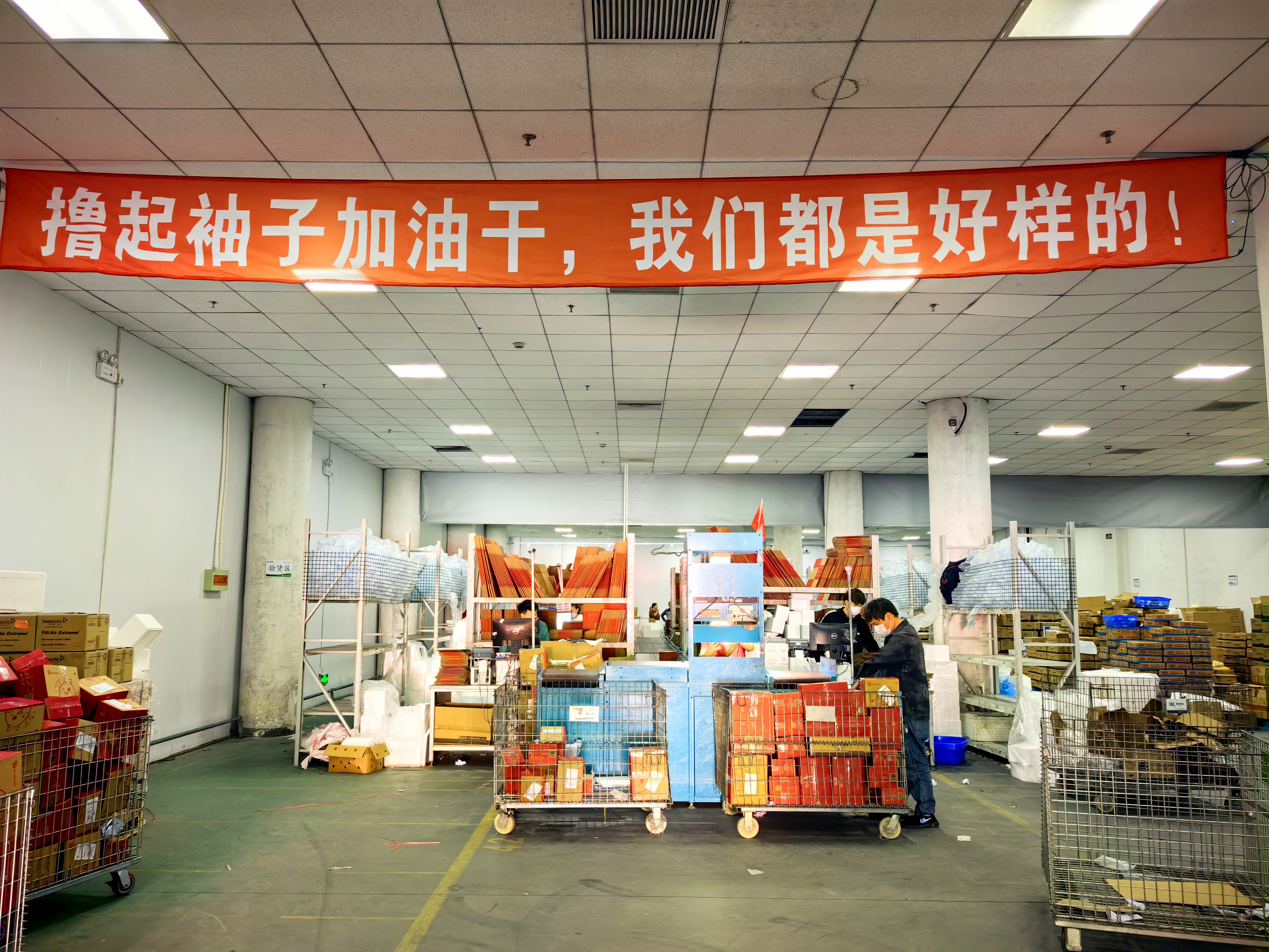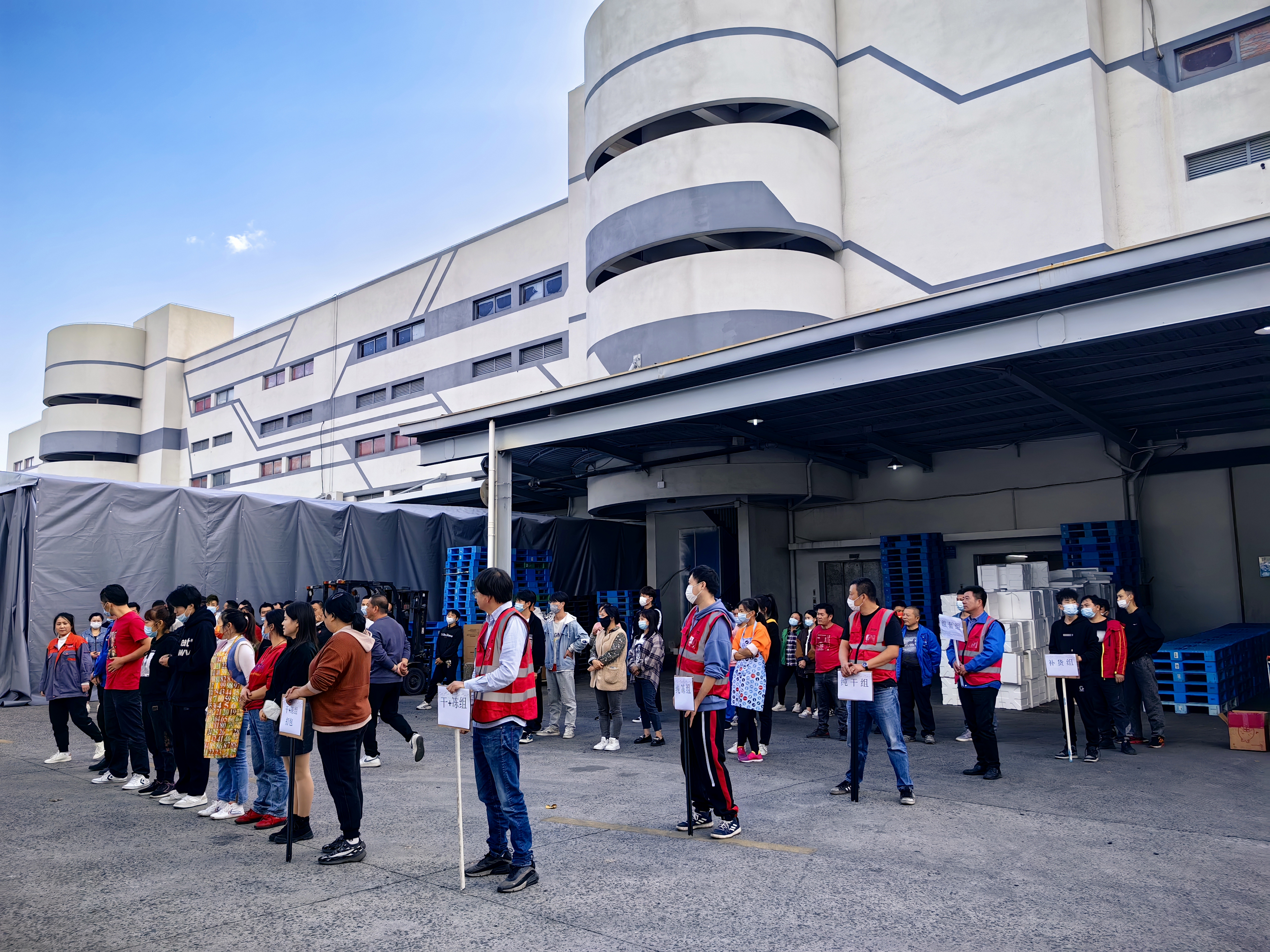 面对高强度的作业压力,现代物流公司尽锐出战,马力全开,竭尽全力克服运作高峰期的人手短缺问题。党政工团齐发力,动员一切可以动员的力量,第一时间组建党员先锋队和青年突击队驰援电商仓库,分担一线压力,前后累计出动285人次;所属新零售物流事业部则成立工作专班,每天高强度作业轮换,不仅党员干部以身作则,带头驻守库区,广大职工也纷纷“请战”,加班加点,不计得失,切实保障了一线现场有序运作。