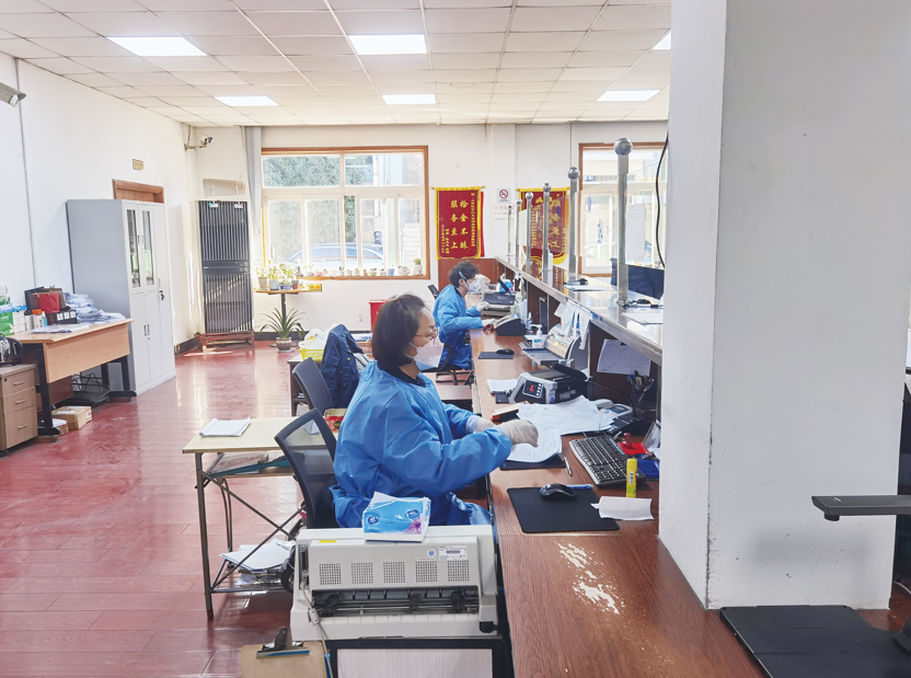 悦安汽车检测站自12月17日起员工陆续感染,公司班子和干部党员组织起来,加强对在岗人员的防护和场所消毒,对员工的岗位重新进行了安排。操作组组长顶岗外观查验、检测线上的3名员工负责了两条环检线及两条安检线的操作。由于人员骤减,3人一天下来几乎都在检测线上,没时间休息。办证组员工坚持到12月21日被“团灭”,公司二线人员及操作组员工轮流顶岗,由原先的8人减少到了最后只剩3人,同时兼任接待、登陆、拍照、审核、签证等岗位,哪里缺人就往哪里顶,确保服务好每一位客户,坚守着岗位保证每天的正常经营,人员最为紧张的一周仍能保障每日检测车辆30多辆。