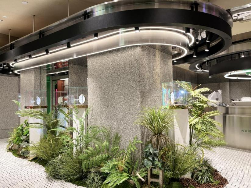 于一楼中岛位置呈现的《茂林秘镜》,特邀青年艺术家、植物装置设计师顾晨忆惊艳呈现,作品强调视觉艺术性及生命力,打破传统的艺术表达方式,将“植物性雕塑”的新概念注入门店空间,诠释不一样的镜界魅力。