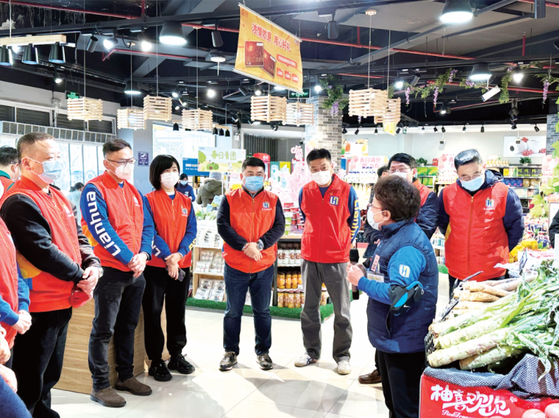 联华股份副总经理、联华营运中心(上海)党委书记董刚对记者表示到,在“1+11”党建品牌引领下,党员们来到联华标超惠南店深入调研学习,党建与业务工作高度融合,见人见事接地气,党员们双脚沾泥、紧贴实际,走到门店中去听意见解难题,挺起肩膀、攻坚克难,既摸清实际情况、精准对接门店的真实需求,又集中群智群力,形成“众人拾柴”的良好局面。联华的舅妈是一个典型标杆,我们需要培养出更多的“舅妈型”店长,起到示范引领作用,以“冲”的心态、“拼”的干劲、“实”的举措,围绕中心工作组织运行,在经营中把党建工作做实了就是生产力,做强了就是竞争力,做细了就是凝聚力,推动营运中心(上海)党建品牌全面提质升级,为联华的高质量发展贡献更多的力量。