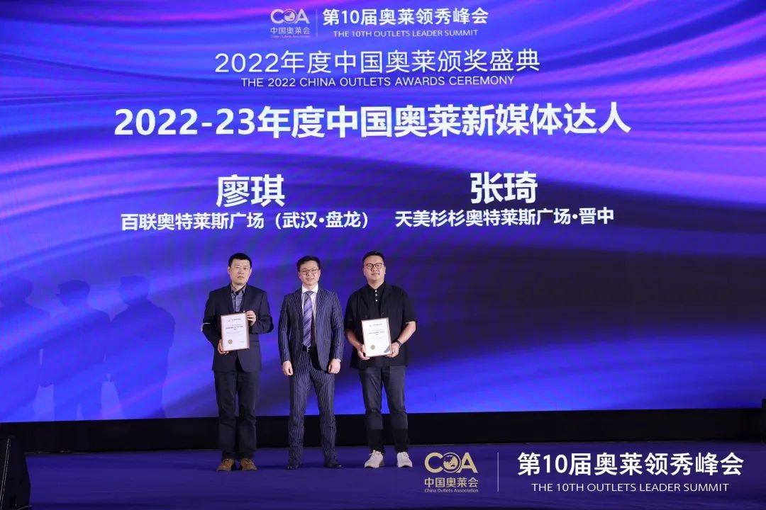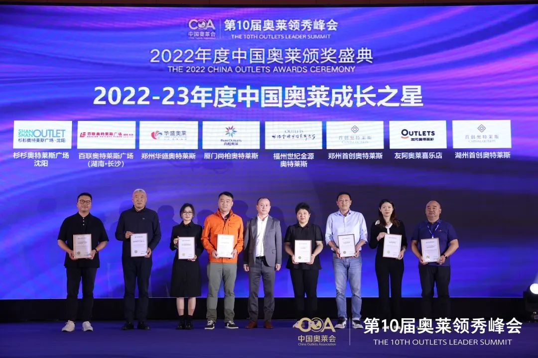 在本次2022年度中国奥莱颁奖盛典现场百联股份荣获10项奖项: