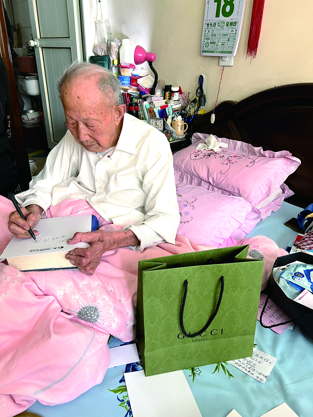正躺在床上休息、今年已是103岁高寿的郑老先生震惊了,他完全没有想到第一百货在这么短的时间竟然会派员送货上门,他想着百联收到信后或许会以邮寄或者快递的方式给他送香水。精神矍铄的老人开心的和一店员工交谈,最后挑选购买了一款中意的香水。临别之时,兴致勃勃的老人又铺纸提笔,为百联送上由衷的祝福。3位一店员工也是乐开了花,他们不仅满足了老人的购物需求,而且创造了商店销售历史上顾客年龄最高的记录。