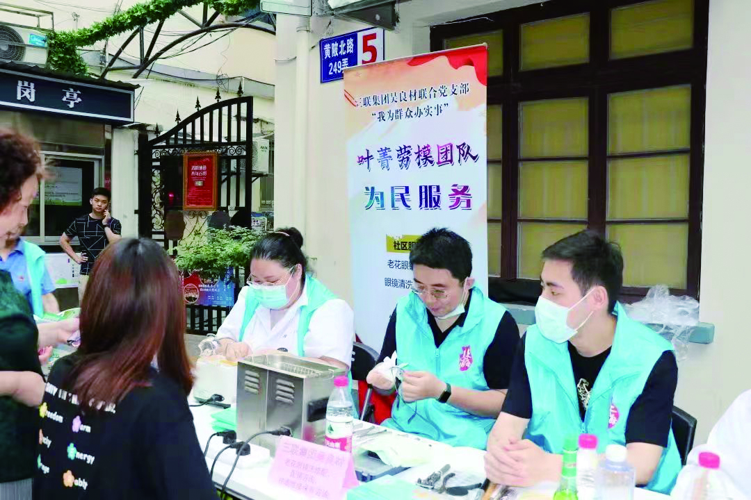 “三联公司劳模志愿者服务队”在全国劳动模范、大国工匠蓝金康和全国五一劳动奖章获得者、市劳动模范叶菁的带领下参与了“学雷锋精神·展劳动风采——劳模工匠志愿服务”、“‘人民城市·劳动赞歌’五一劳模工匠志愿服务日”等志愿活动,在活动现场为屈光不正的患者精准验光、讲解选配眼镜与调节视力的实用知识和方法诀窍、提供镜架矫正、托叶换新等专业技术服务。通过志愿服务等形式为人民群众创造价值、为城市建设增添温度、为行业职工树立榜样,引领广大职工增强服务意识、升华服务理念、创新服务模式、提升服务技能、开展服务奉献,让三联老字号品牌的服务品质和公益形象更加深入人心。