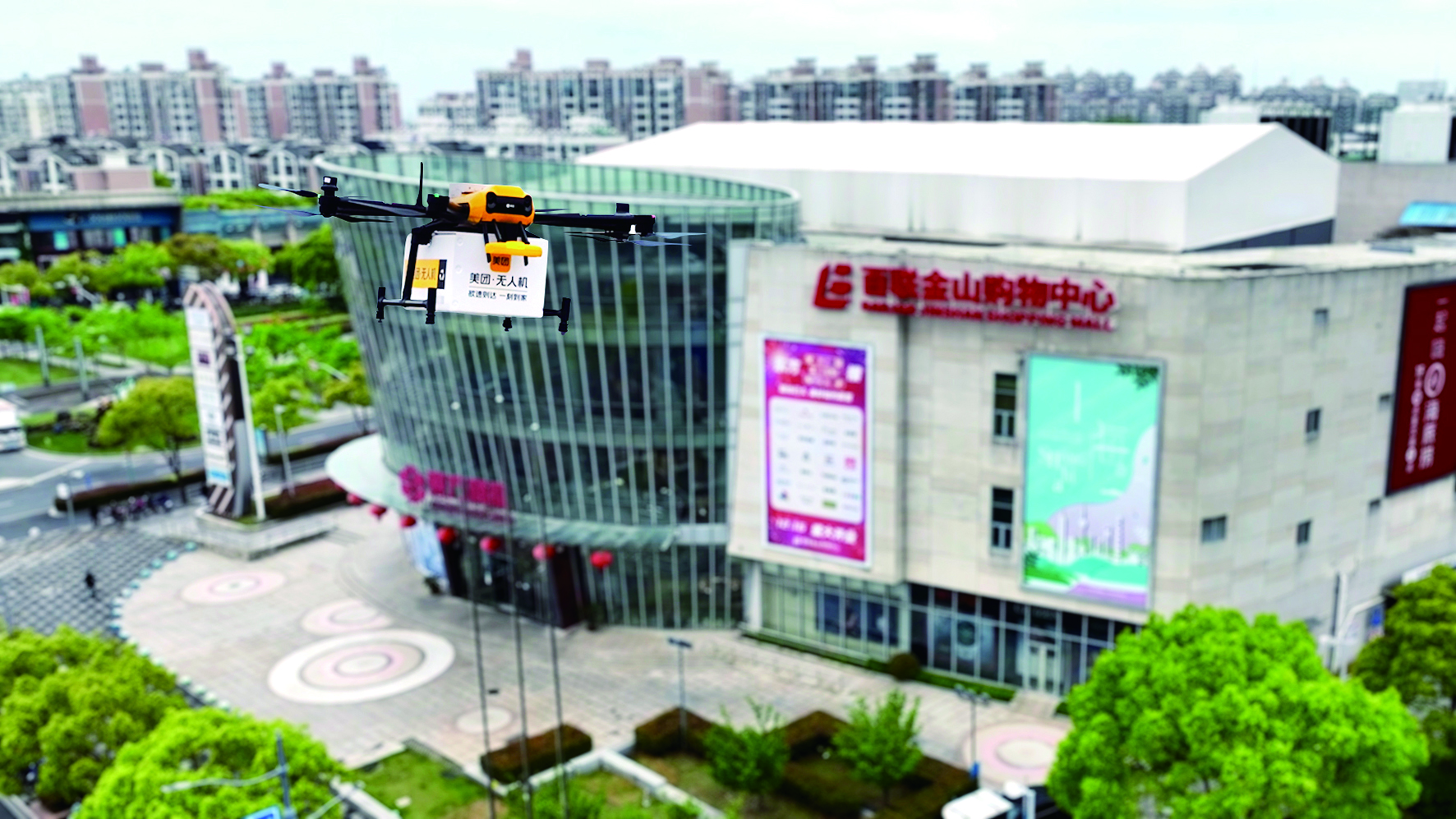 百联金山购物中心是百联股份首个全资投资的郊区购物中心,也是金山区建设的首批大型商业综合体,内部包括了餐饮、娱乐、零售等多种业态商户。此次合作落地的上海首条无人机配送商用航线,起点正位于购物中心内,首个降落点设在距购物中心直线距离1.8公里处的上海金山工商联大厦附近,可为周边的居民、白领等提供“3公里15分钟达”的标准配送服务。