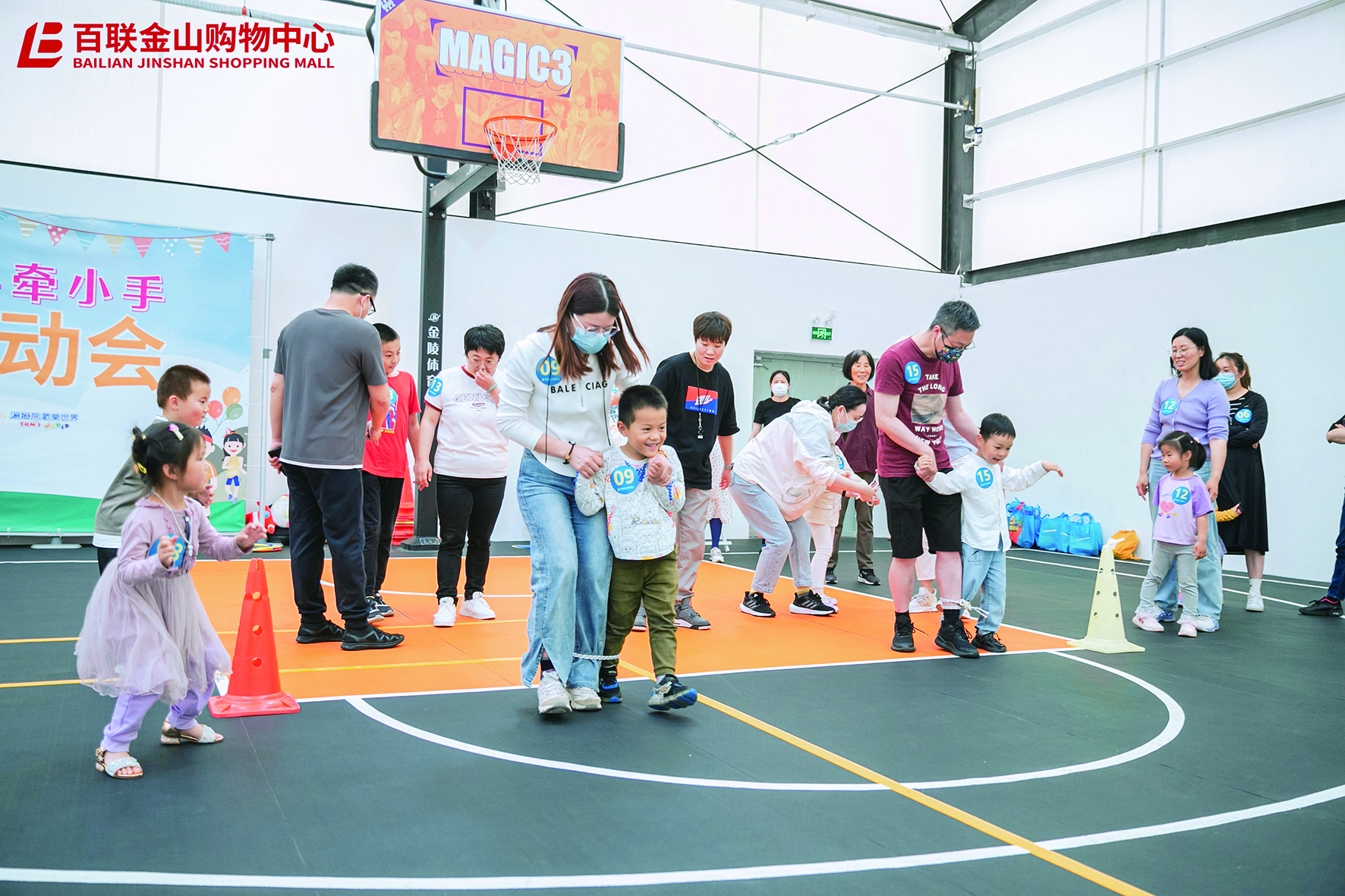 亲子运动会:现在的家长特别关注孩子德智体的全面发展,百联金山购物中心利用屋顶篮球场举行运动会,为亲子提供互动的场所和机会,同时帮助孩子建立良好的运动习惯。