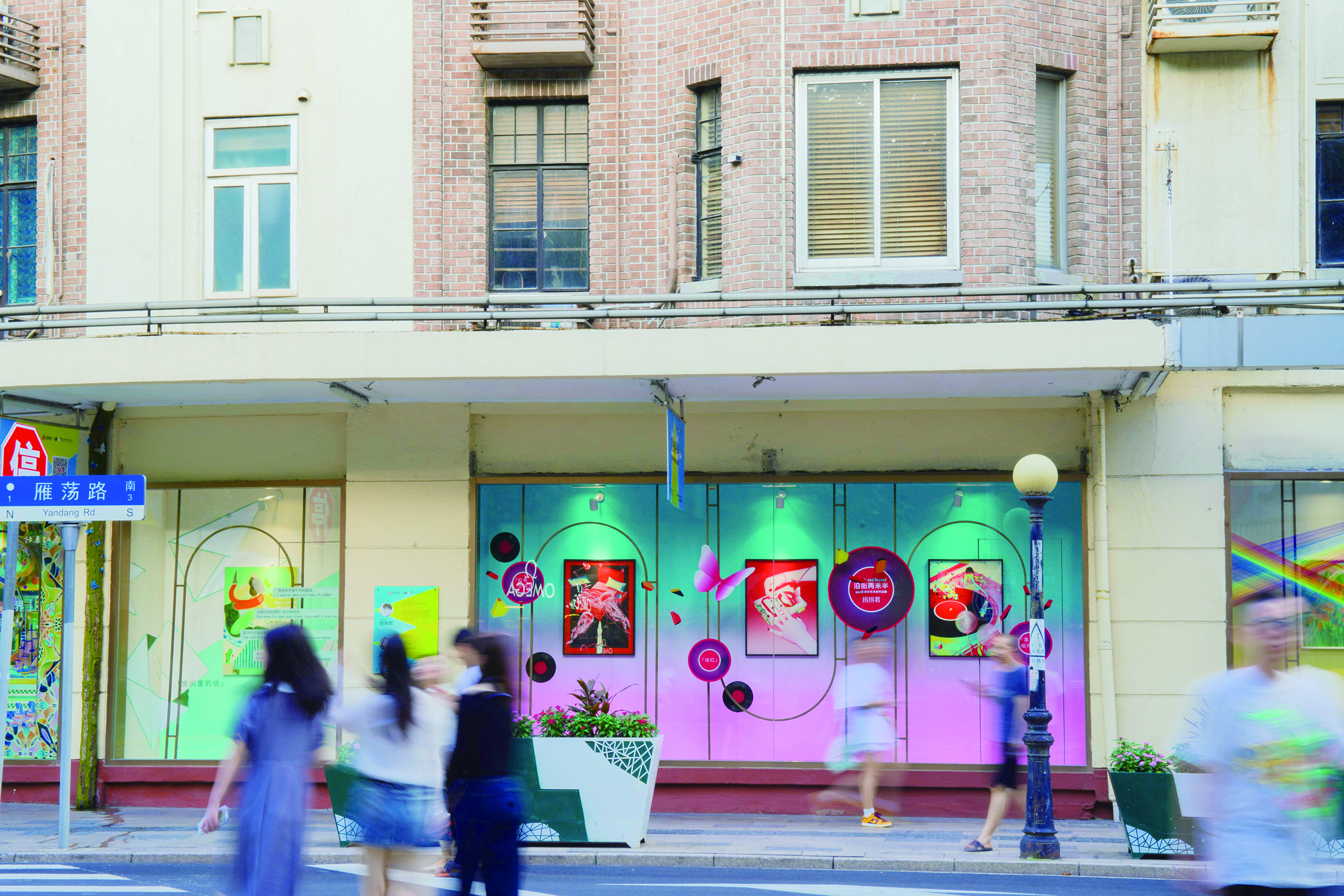 90后艺术家张子恒的《上海之夜》描绘了多个上海代表性建筑,将这些群像在商圈地标作艺术化呈现,又再融入城市景观,赋予了独特视角;85后艺术家齐晓把时代印记融入《你的童年我的童年》,希望唤起大家对于这座城市的共同美好回忆;就读于中央美院的Z世代艺术家何佩璇所绘制的《给你最好的礼物》,基于对生活的细致观察,将田野中盛开的郁金香与橱窗外城市车水马龙的景致相映衬,帮助快节奏下的行人抽离思绪,找回轻松惬意……“沿街两米半”让闹市区的人行道成为开放的艺术走廊,让美学异想触碰并渗透入城市肌理。