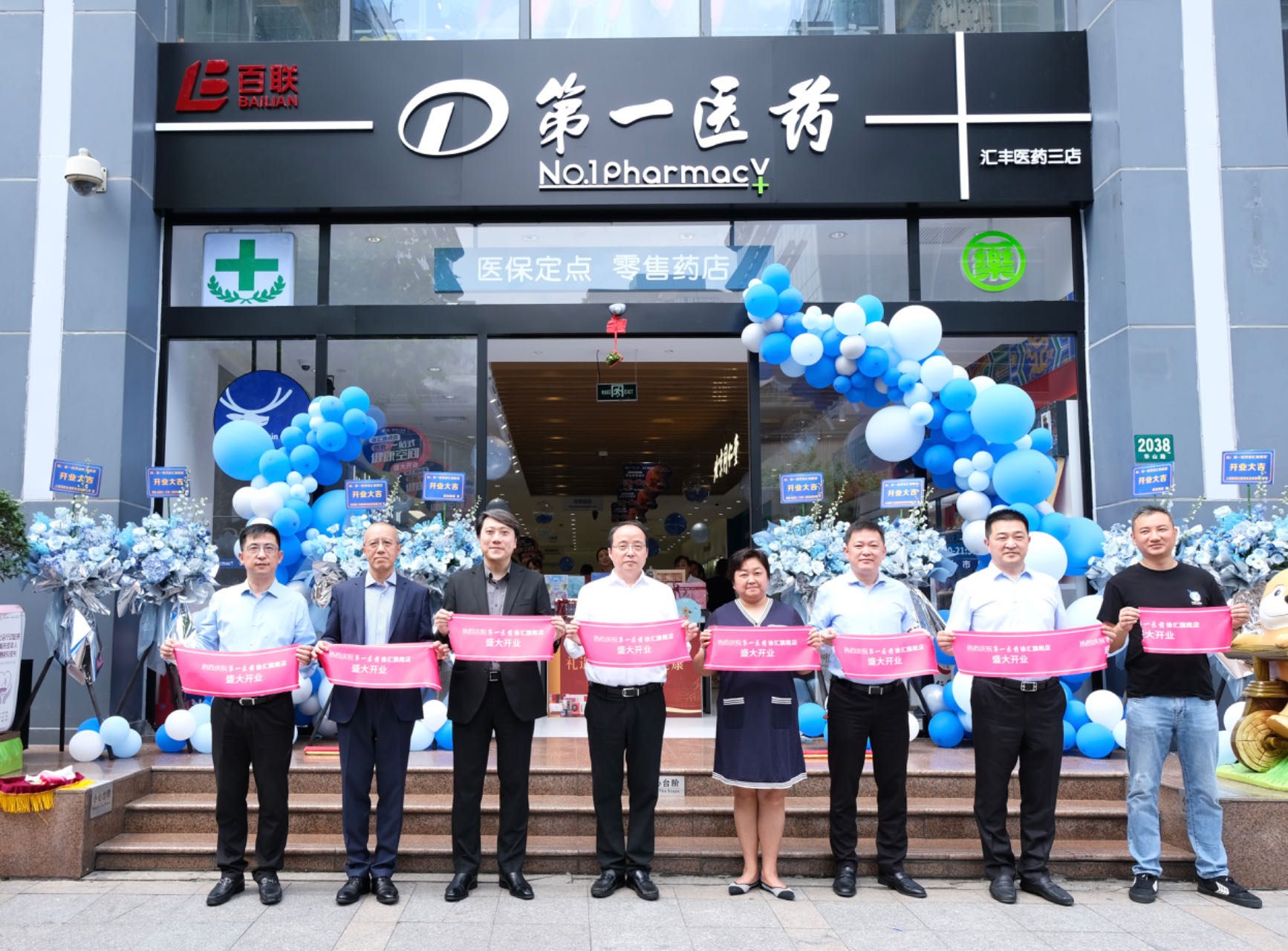 百联集团副总裁、第一医药董事长孙伟,徐汇区徐家汇街道党工委书记万小岚,第一医药党委书记张海波,第一医药总经理姚军,百联徐汇商业广场总经理揭海,拜耳医药保健有限公司副总裁、核心品牌事业部负责人蒋以希,博福-益普生(天津)制药有限公司总经理陈家麟等参与仪式并剪彩,共同庆祝这一重要时刻。