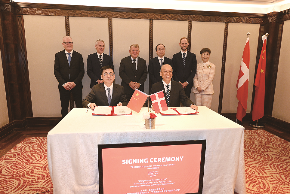 8月16日,第一医药与北京声望远播商贸有限公司(系丹麦Demant集团在华全资子公司)在和平饭店举行战略合作签约仪式。丹麦王国外交大臣拉斯穆森(Rasmussen),丹麦驻华大使马磊(M?ller),上海总领事魏鸣珂(Mikael),集团副总裁、第一医药董事长孙伟,丹麦戴蒙特(Demant)集团听力业务副总裁克劳斯(Claus)等出席并见证了签约仪式。第一医药总经理姚军,声望听力CEO傅建彤代表双方签署战略框架协议。