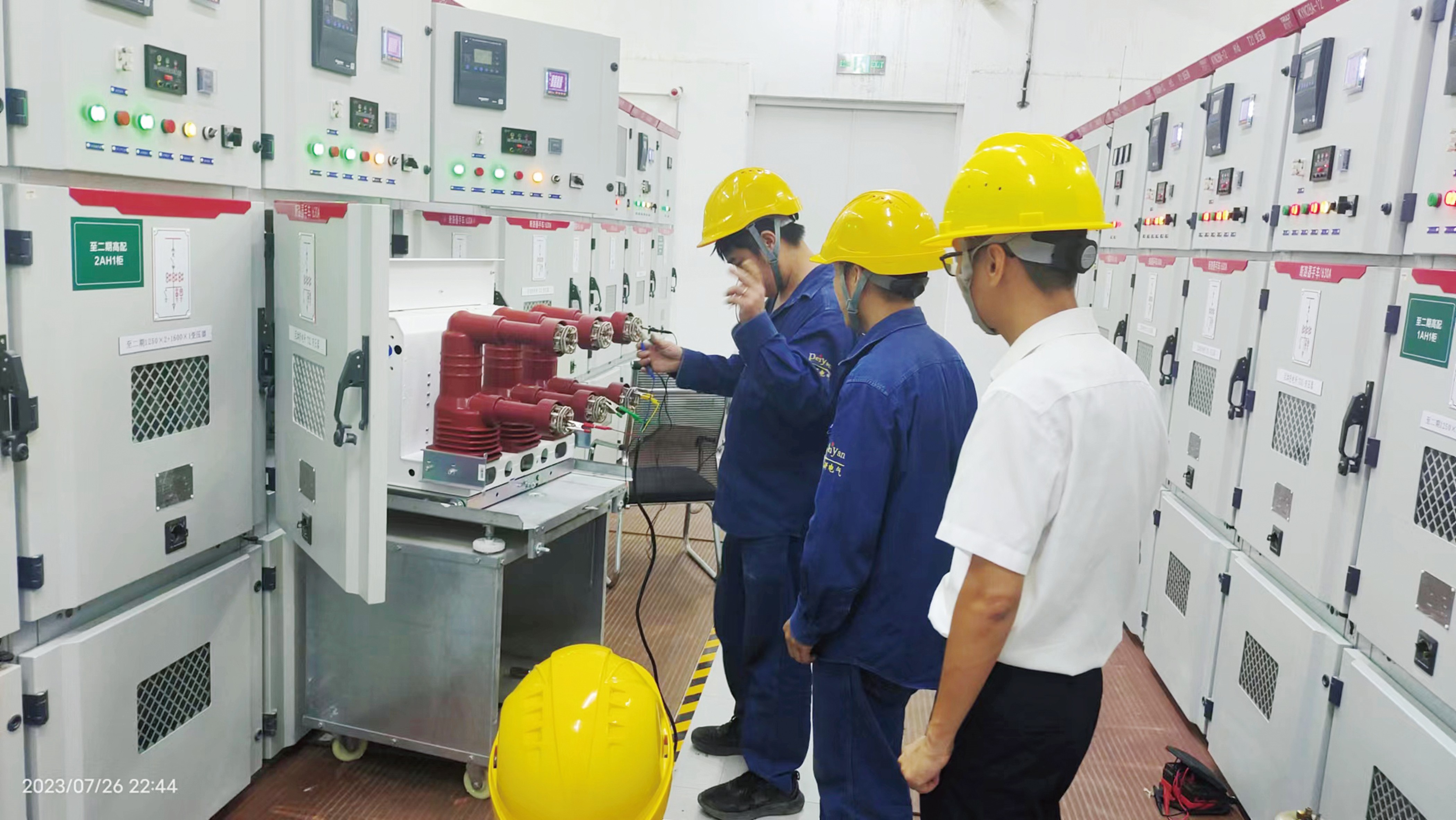 为保证门店正常运营,公司领导携行政保障部及物业中心相关人员于营业结束后前往电气试验现场监督指导工作。本次工程负责人在作业开始前对工作任务、停电范围、安全措施、危险点及安全注意事项进行全面交底及技术指导,并对第三方作业人员的特种作业操作证及安全保护措施进行了检查,同时由安保人员确认当晚试验线路所涉及的所有店铺完成闭店清场,随即开始倒闸作业。