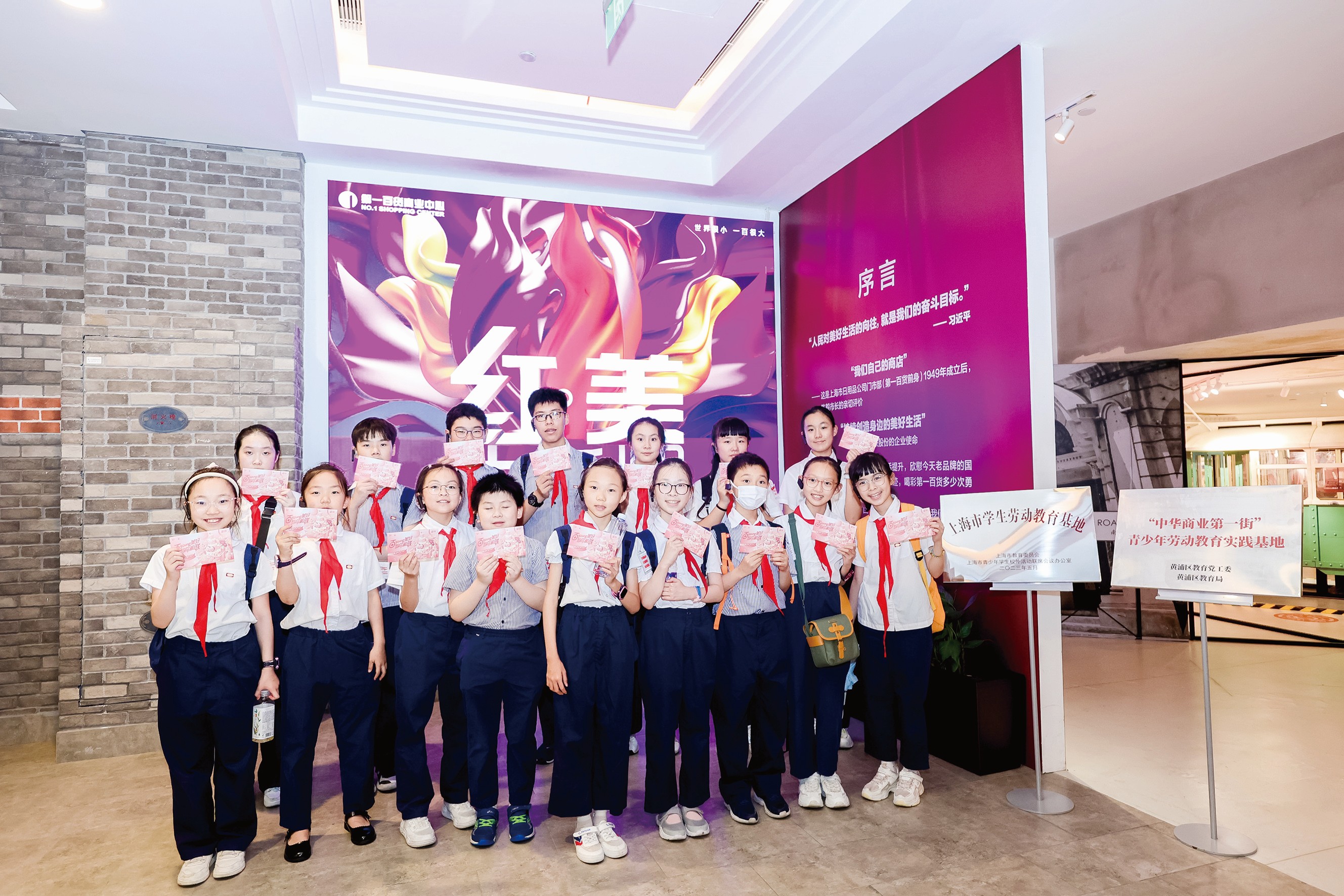 同样是常态开放点的第一百货100弄文化空间,进入暑期后,各色鲜艳的旗帜和标语牌一次次被展开,身着整齐校服、佩戴红领巾的小小少年们正排队有序进入“红 美生活”庆祝建党百年特别展参观。展厅里,讲解员们先后迎来了来自黄浦区卢湾一中心小学、报童小学、曹光彪小学等学生团队……历史悠久的第一百货正焕发出新时代的活力。在“红 美生活”特别展中,透过一张张照片、一件件实物,讲解员详细介绍了上海第一家国营百货商店的红色故事和商业发展历史,让孩子们通过探索上海商业发展的历史,铭记为民而生的人民情怀和与国共进的责任担当,感受其中的劳动精神、奋斗精神、奉献精神和创造精神。在与展厅一墙相隔的培训中心内,100弄文化空间的宣讲团队正在为最新版本的青少年版讲稿做润色补充,希望能为更多的学生团队讲好红色文化,传承红色基因。