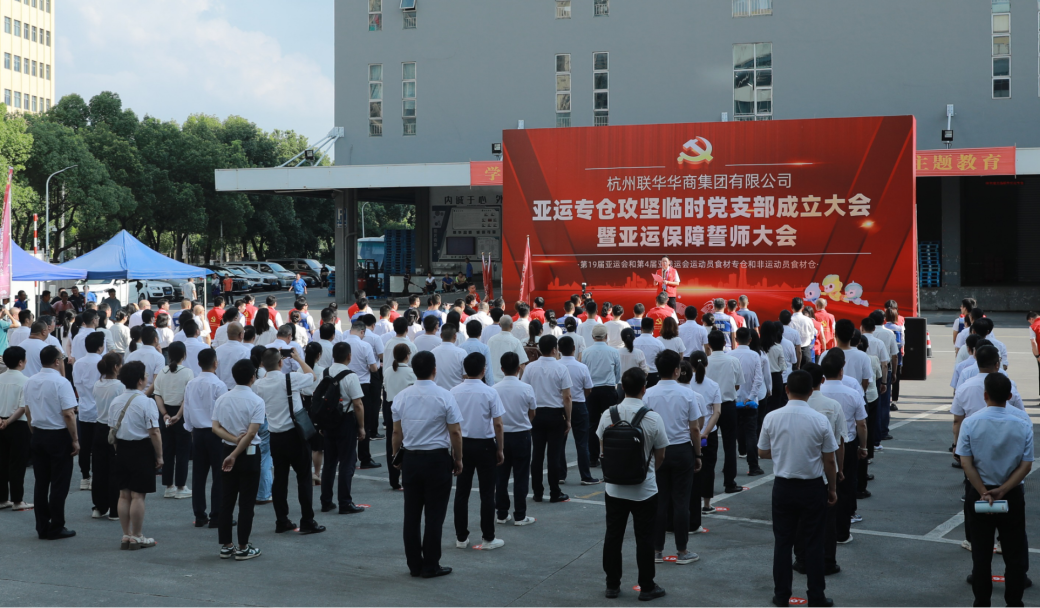 7月24日,浙江联华召开亚运保障誓师大会,成立亚运专仓攻坚临时党支部及五支专项攻坚突击队。