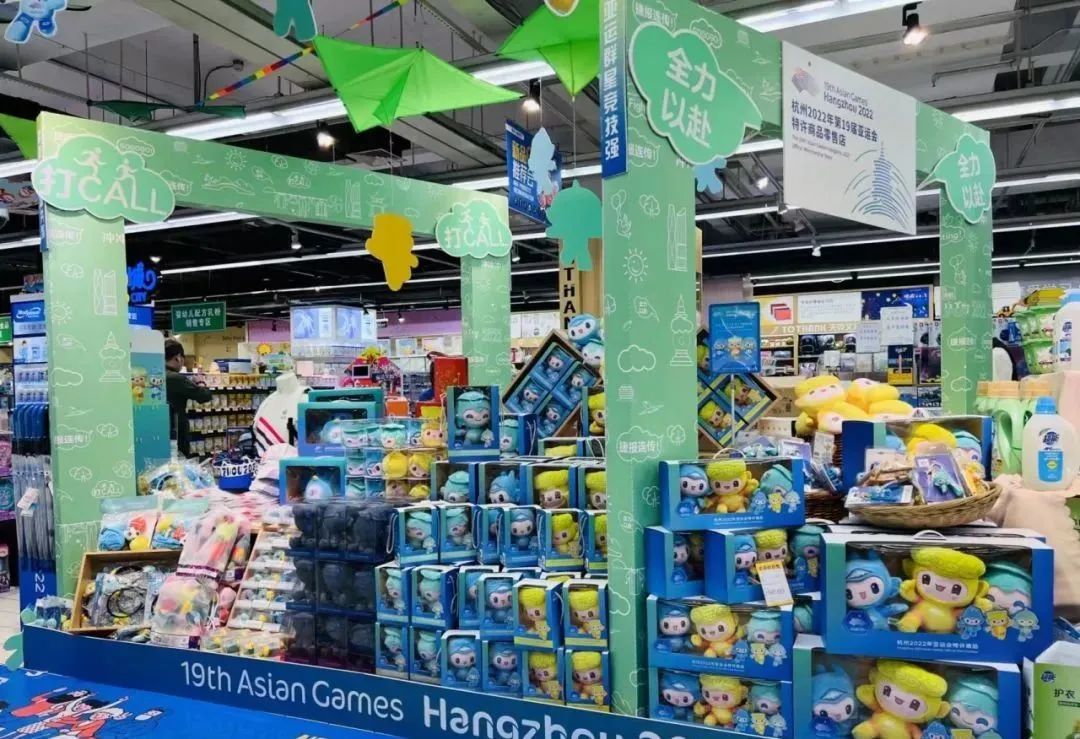 作为杭州第19届亚运会特许零售企业,浙江联华旗下共有19家主力门店获准销售本届亚运会特许商品,为顾客提供吉祥物公仔、服饰、水杯、箱包、徽章、雨伞等136款亚运会特许商品选购服务。
