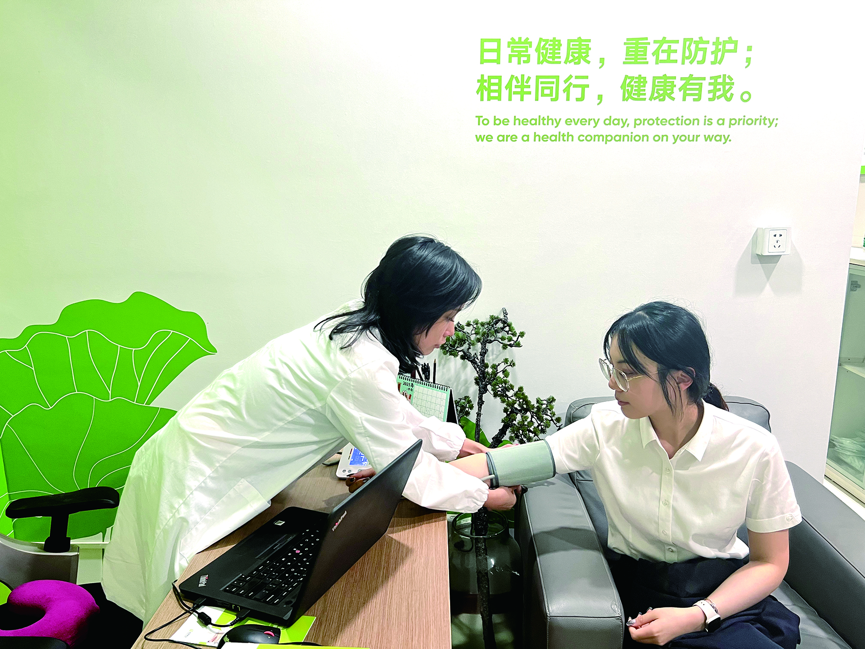 “健康小屋”投入使用后,在邵钧医生专业健康服务团队的支持下,在做到服务时间固定、服务地点固定、服务人员固定的前提下进行规范运作,做到小屋有专人负责,定时清洁消毒,倡导预约服务,合理使用。每周一、三、四下午面向全体职工开放,由具有专业医护背景的工作人员开展线上疾病咨询、电话问诊,线下面对面健康顾问,吸氧、针灸、拔火罐等,解读体检报告,代配药等健康咨询服务。聚焦心理关爱、睡眠调理、中医调理、运动辅助、营养处方等特色化健康服务项目,定期深入物业基层一线,多样化开展“送健康下基层、送服务到身边”的健康巡讲、巡诊、巡护活动,逐步拓展符合不同职工个性化需求的“常更常新”动态服务内容,不断丰富工会服务阵地工作内涵,为企业经济发展和职工身心健康持续助力。