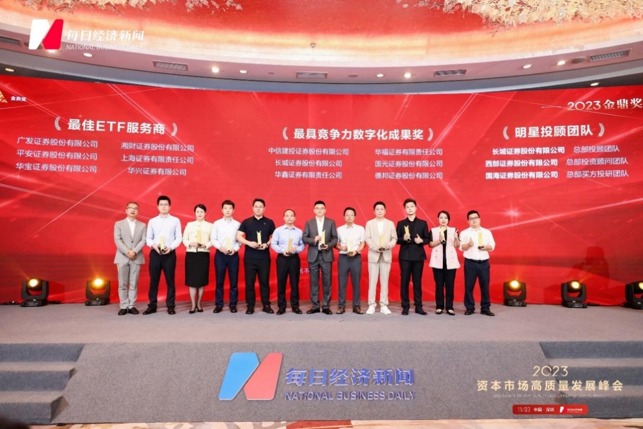 11月3日,由《每日经济新闻》主办的“2023资本市场高质量发展峰会”在深圳香格里拉酒店举行,“2023金鼎奖”评选结果正式揭晓。上海证券凭借在ETF(交易型开放式指数基金)业务服务的不断创新和发展,荣膺“最佳ETF服务商”奖项,代表着公司财富管理服务能力获得市场认可。