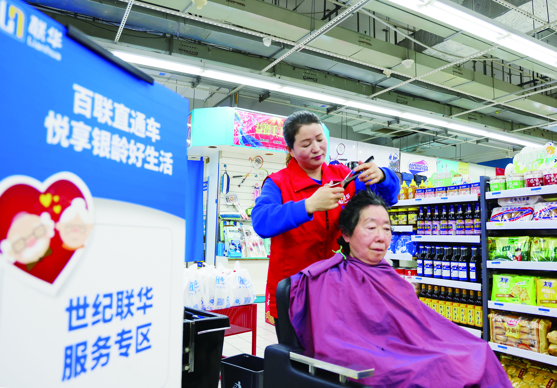 活动当天,到场的银发族不仅可以轻松买到衣食住行所需的各类商品,还能在这里免费享受到理发、健康检测(测血压/血糖)、参茸加工、眼镜清洗/修配/整形、适老化房屋装修改造建议和金融理财咨询等多项综合附加服务。联华根据银龄人群的消费偏好,探索定期运行“门店银发驿站”“菜篮子进社区”等特色服务,除了提供类目齐全、价格稳定、品质可靠的商品外,牵手第一医药、好美家、吴良材、上海证券等企业,以多种形式走进更多联华门店,发挥自身的资源优势,展现具有特色的专属服务,助力一刻钟生活圈建设,努力打造美好生活的“幸福圈”。
